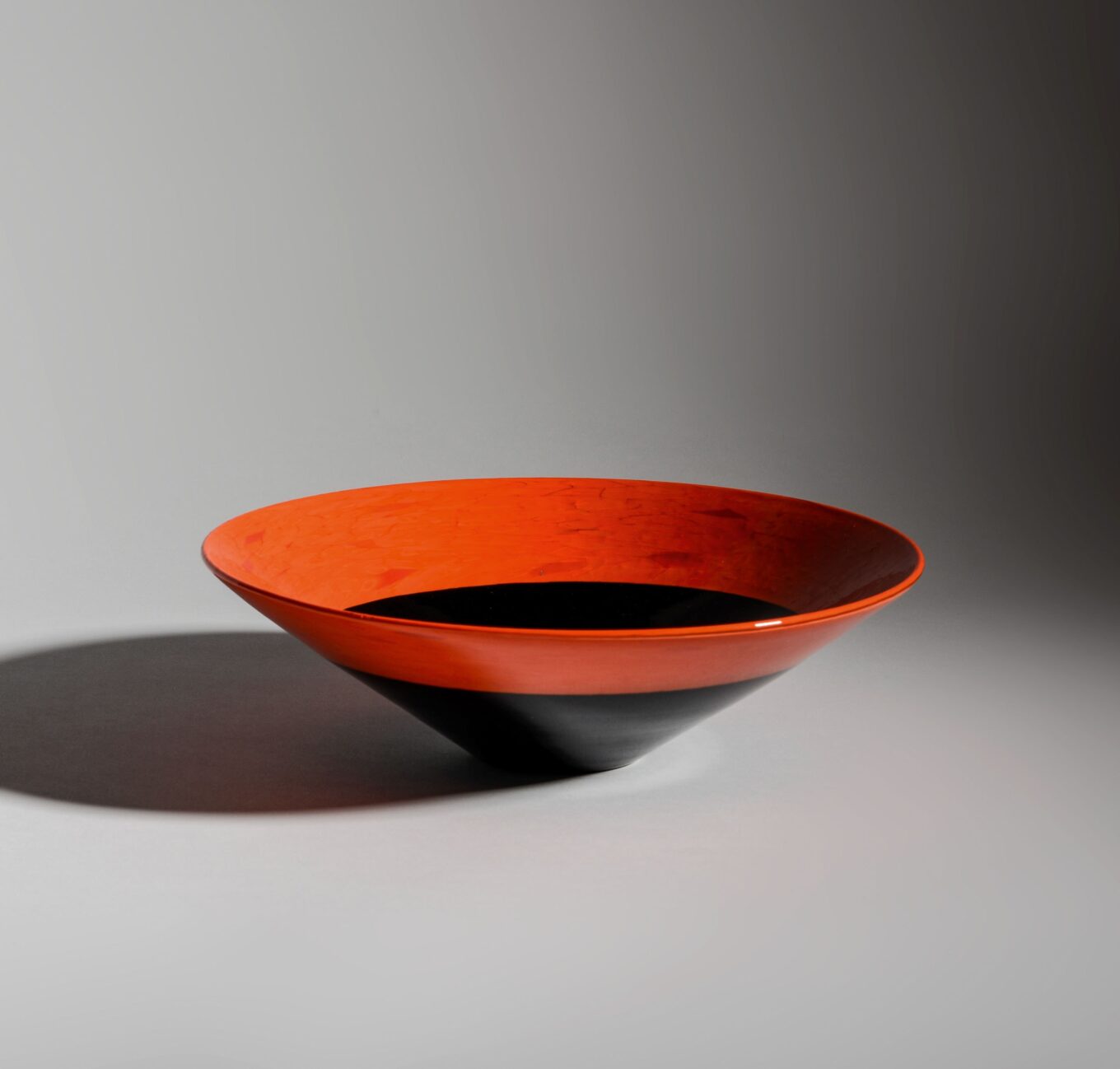 Тему модернизма продолжает следующий объект, который представила галерея Marc Heiremans, — тарелка 1940 г. работы Карло Скарпы. Хейрманса считают экспертом в области муранского стекла. Скарпа является легендой итальянского модернизма. Родившись в Венеции, которую ненадолго покинул в детстве, он вернулся в родной город и больше никогда из него не уезжал. Хоть Скарпа ограничил себя географическими рамками одного города, сфера приложений его интересов была безграничной — он занимался проектами реконструкции исторических зданий, дизайном павильонов и, конечно, созданием предметов из стекла, которое в его исполнении получило фактуру, глубину и колористическую насыщенность.