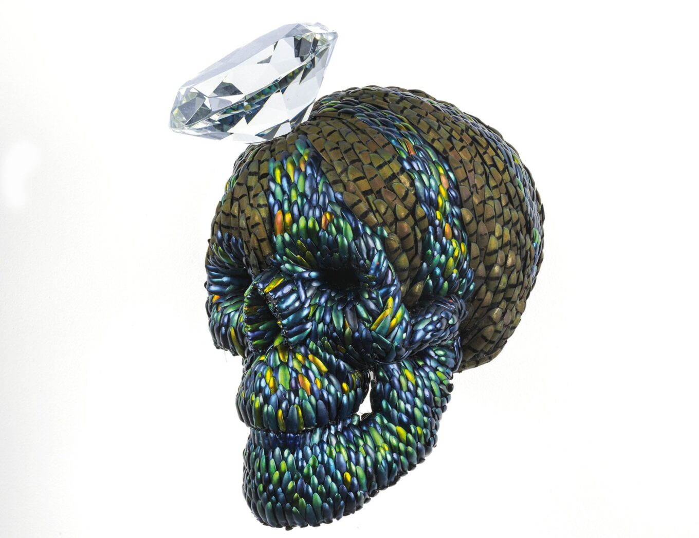 Говорят, что бельгийский художник, сценограф, скульптор, сценарист и режиссер Ян Фабр является правнуком знаменитого энтомолога Жана-Луи Фабра, автора энциклопедии «Жизнь насекомых». Точно об этом известно только самому Яну, но несомненно то, что насекомые оказали на него огромное влияние. Свои арт-объекты он создает из панцирей жуков, а также из собственной крови и пепла от банкнот. На BRAFA в этом году Galerie Jamar представит его работу, выполненную в 2013 г., — «Череп с бриллиантом».