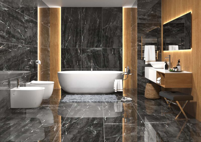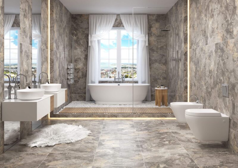 В ассортименте Megagres представлены самые разнообразные имитации природных материалов, дополненные богатой цветовой гаммой. В первую очередь всевозможных пород мрамора, натурального камня и сланца. Широкий формат предлагается в размерах от 60х60 см до 80х160 см. Материал достаточно удобен в укладке и позволяет оформить как небольшие площади санузлов, так и обширные пространства.