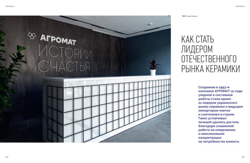 «Современный покупатель плитки и сантехники делает ремонт раз в восемь лет, при этом готов тратить время на 4–6 визитов в специализированный магазин. Большинство наших клиентов кроме качества и типа материала чаще обращают внимание на цену товара. В последние годы покупатель больше рассматривает комплексные решения, привлекая студии дизайна и архитекторов либо приобретая готовые интерьерные решения», — рассказывала в одном из интервью руководитель розничной сети АГРОМАТ Галина Добровольская.