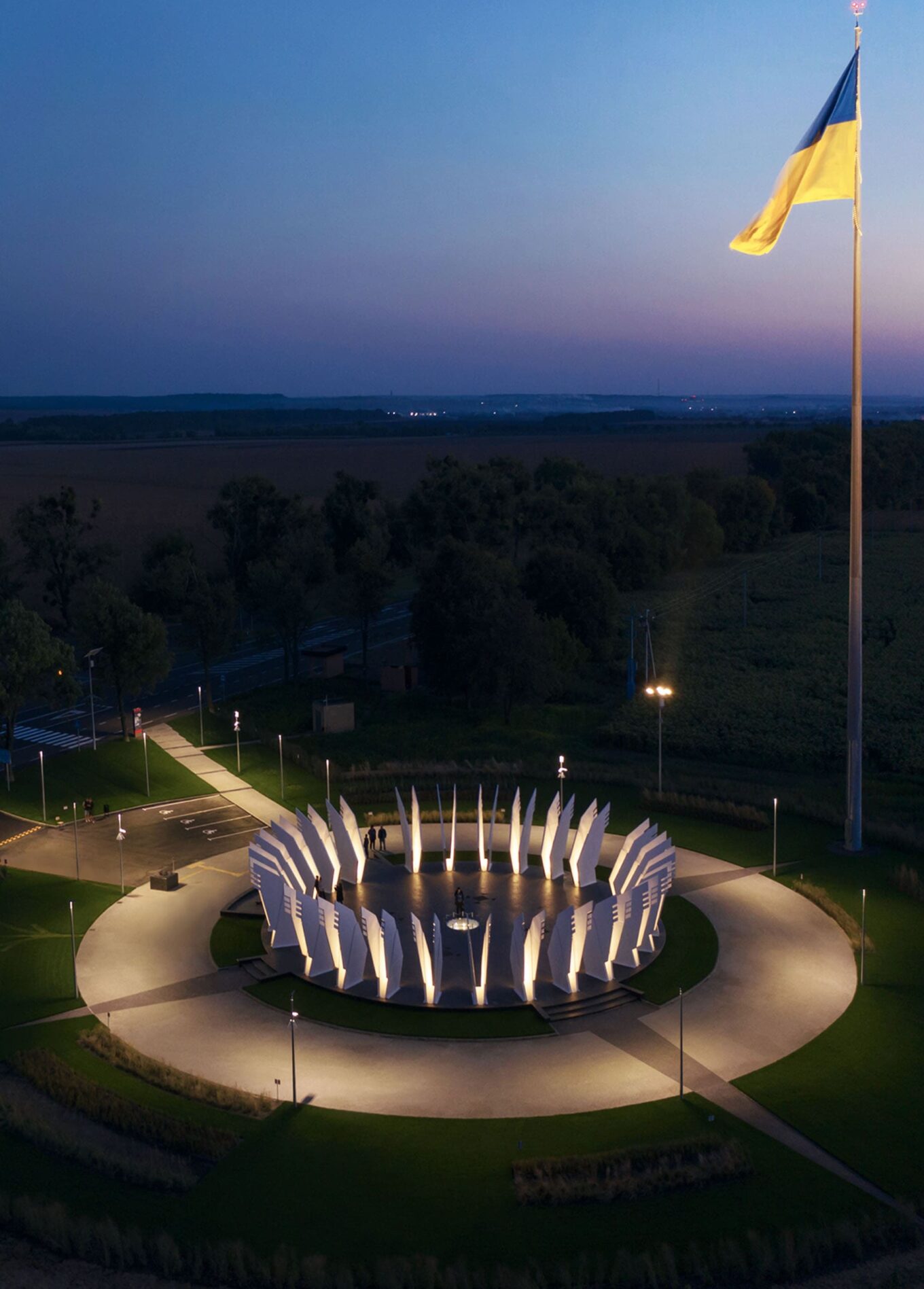 Він являє собою круглий майданчик із розташованими по периметру монументальними скульптурами крил. Кожна з пар крил символізує область (регіон) країни, включно з Кримом та Севастополем, а в центрі композиції розташований колодязь-вівтар. За тридцять метрів від центру розташований флагшток. Навколо монумента облаштовано прогулянкову зону та місця для паркування.