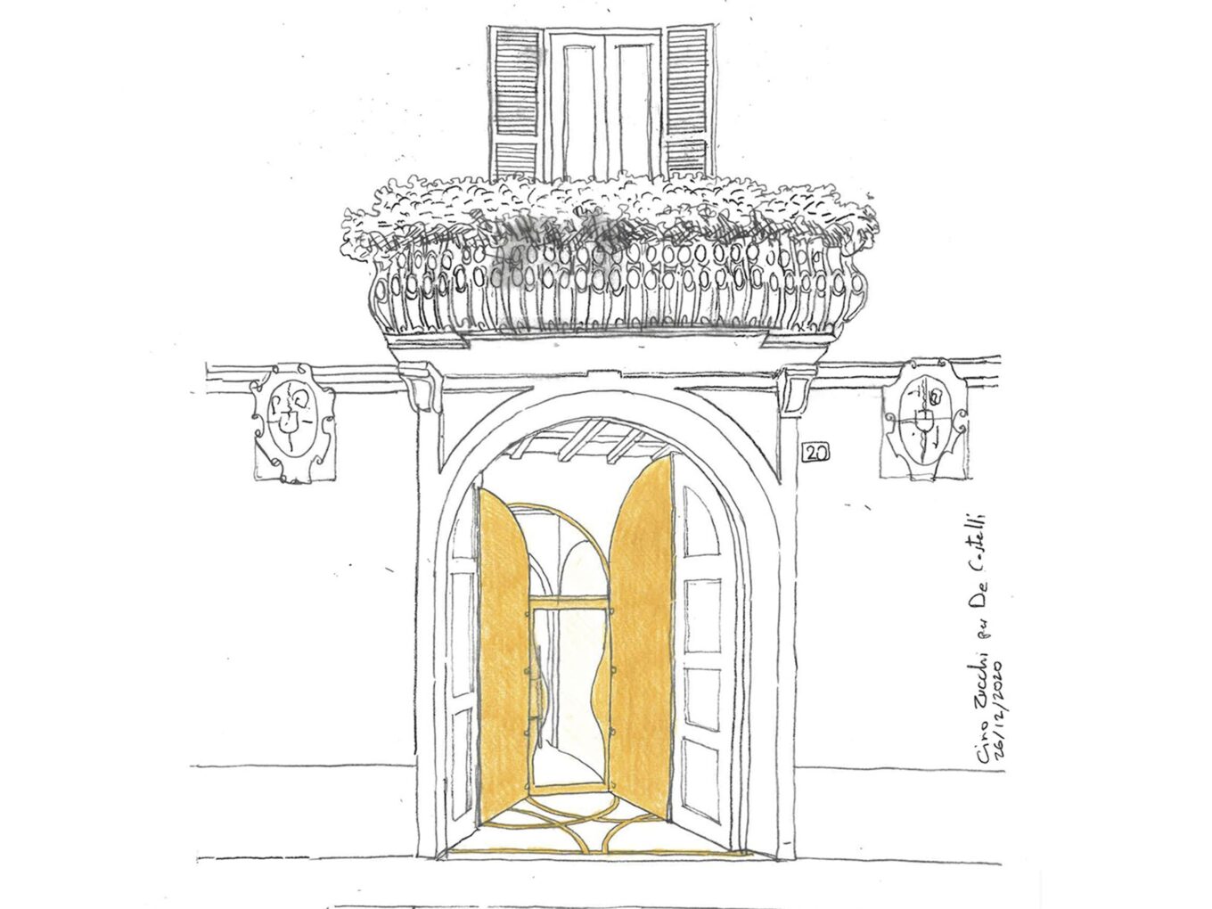 Другую трансформацию входа Дзукки демонстрирует в миланском шоуруме фабрики De Castelli, который служит местом встречи с клиентами, партнерами, архитекторами и дизайнерами. Здесь размещаются коллекции и библиотеки образцов компании. Вход в зал здесь так же, как в предыдущем проекте, неразрывно связан с историческим и архитектурным контекстом Милана. Работая над этим входом, Чино создает портал между старым городом и современным внутренним пространством шоурума. Он выглядит словно приоткрытые высокие створки, масштаб которых умышленно искажен, чтобы добавить образу величественности. В интерьере шоурума, спроектированном Дзукки, сочетаются характерные для производства фабрики материалы — латунь и медь.