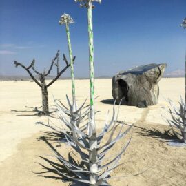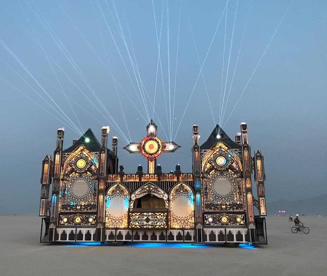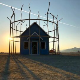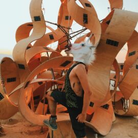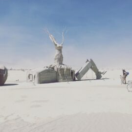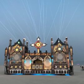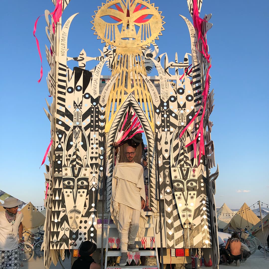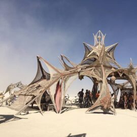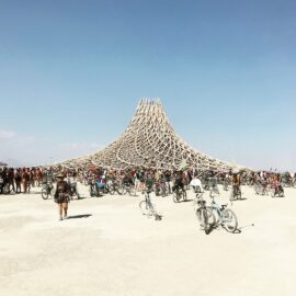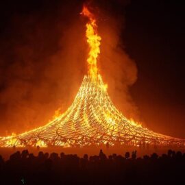 В этом году сжигание главного храма – деревянной структуры Galaxia, спроектированной французским архитектором Артуром Маму-Мани Arthur Mamou-Mani – прошло в тишине. Так участники и гости фестиваля почтили память основателя Burning Man, американского художника и филантропа Ларри Харви, который скончался 28 апреля 2018 года. Об архитектуре Храмов за все годы проведения фестиваля мы писали здесь: