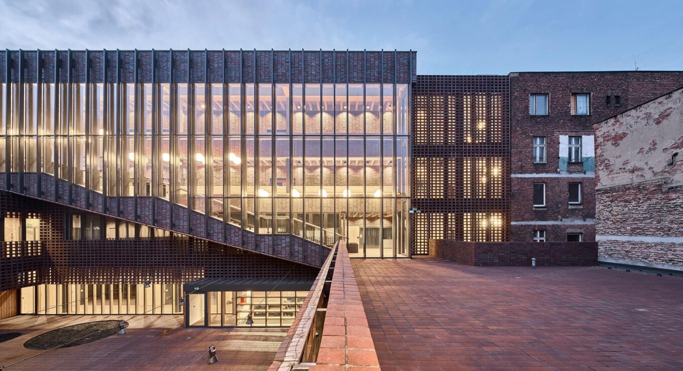 Стены из темного обугленного кирпича, принадлежавшие чудом уцелевшей постройке на месте бывшего завода, стали дизайнерским кодом для студий BAAS Arquitectura, Grupa 5 Architekci, Małeccy Biuro Projektowe. Опираясь на колористическую палитру исторического здания, на его ритмы и графический рисунок, архитекторы создали керамическую оболочку для железобетонной конструкции факультета радио и телевидения Силезского университета. Этот прием объединяет старое и современное здания в единый ансамбль.