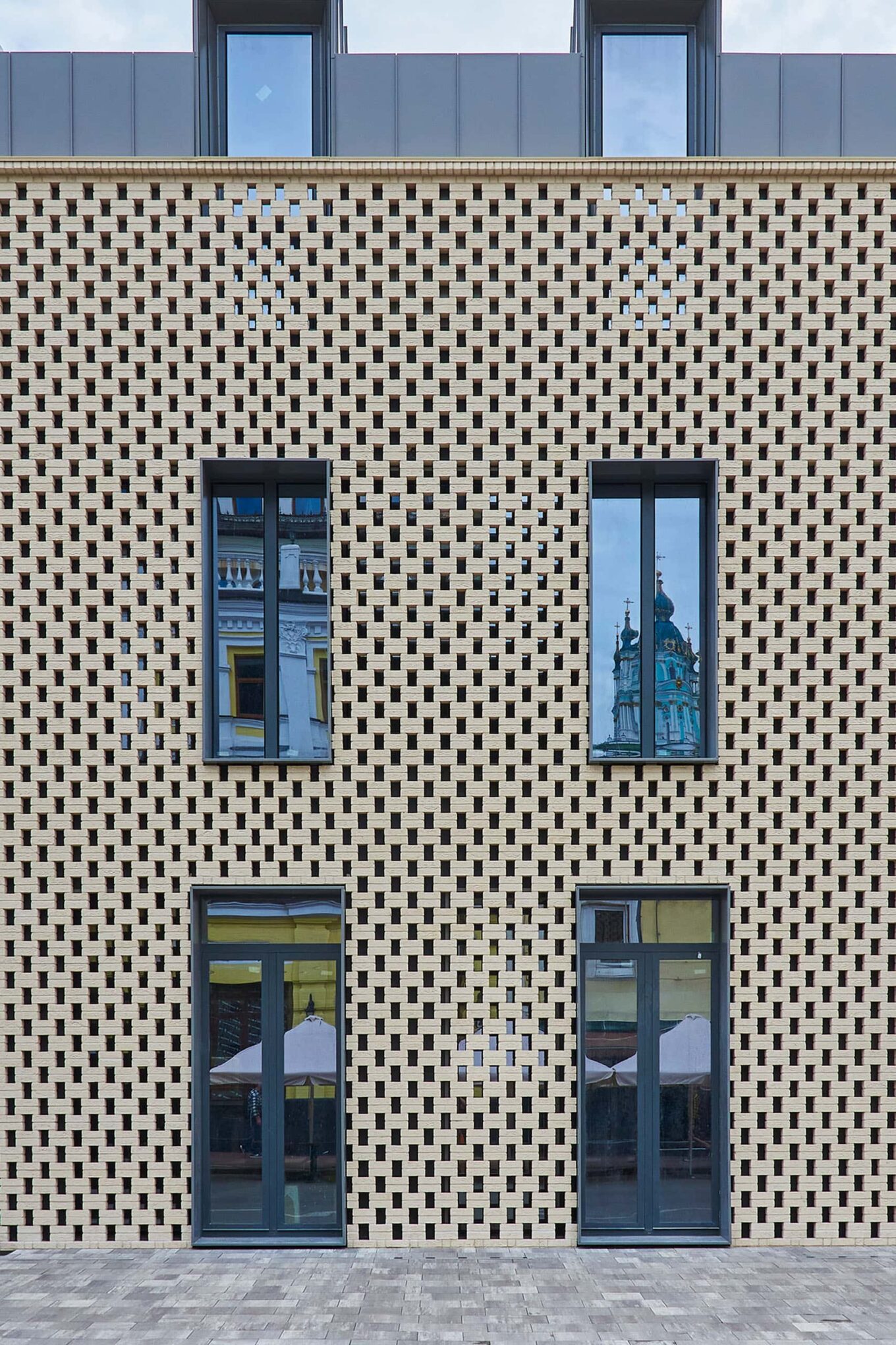 Каркас здания очистили от башенок и надстроек, а его фасад постарались сделать максимально чистым — без декоративных излишеств. Чтобы продемонстрировать «породистость» и статусность объекта, архитекторы решили использовать на фасаде руст из габбро — украинских гранитов. Визуальный образ ANDRIYIVSKY City Space претендует на самоценную эстетику и долгосрочную актуальность. А смешение функций программирует ту необходимую, по мнению Олега Дроздова, «перформативность» объекта: из транзитной зоны этот участок Подола благодаря новому ядру притяжения прогнозируемо превратится в локальный центр южных кварталов. (Подобную же задачу SAGA Development ранее ставила и перед Дроздовым для проекта SAGA City Space на Сагайдачного.)