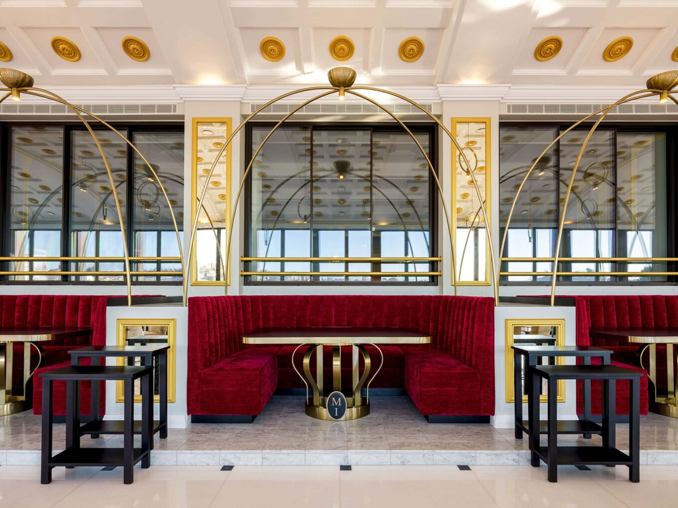 Ресторан высокой кухни «1828» (дата начала гражданской войны в Португалии) украшает лепнина на потолке, латунные обеденные столы с инициалами португальских королей и лаконичные современные подвесные светильники.