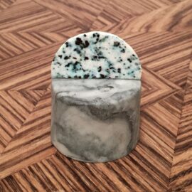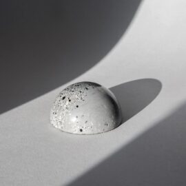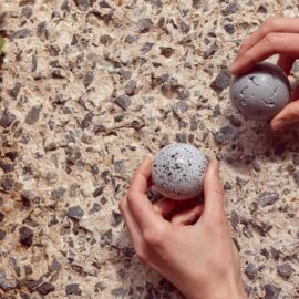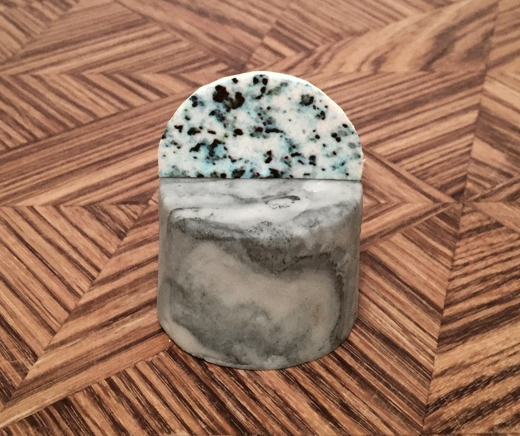Автор приоткрывает секрет мастерства, объясняя, что разных оттенков «бетонной глазури» она добивается, вводя натуральные красители – пищевой уголь и кунжутное семя. В поиске идеальной формулы ювелир провела на кухне несколько дней!