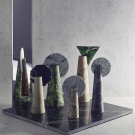 Теперь же к широкой гамме фактур, которые дизайнер создает для своих флёдеболлеров, добавилась еще одна – напоминающая грубо обработанные бетонные поверхности колонн и фасадов лондонского шедевра бруталистской архитектуры – жилого комплекса Барбикан.