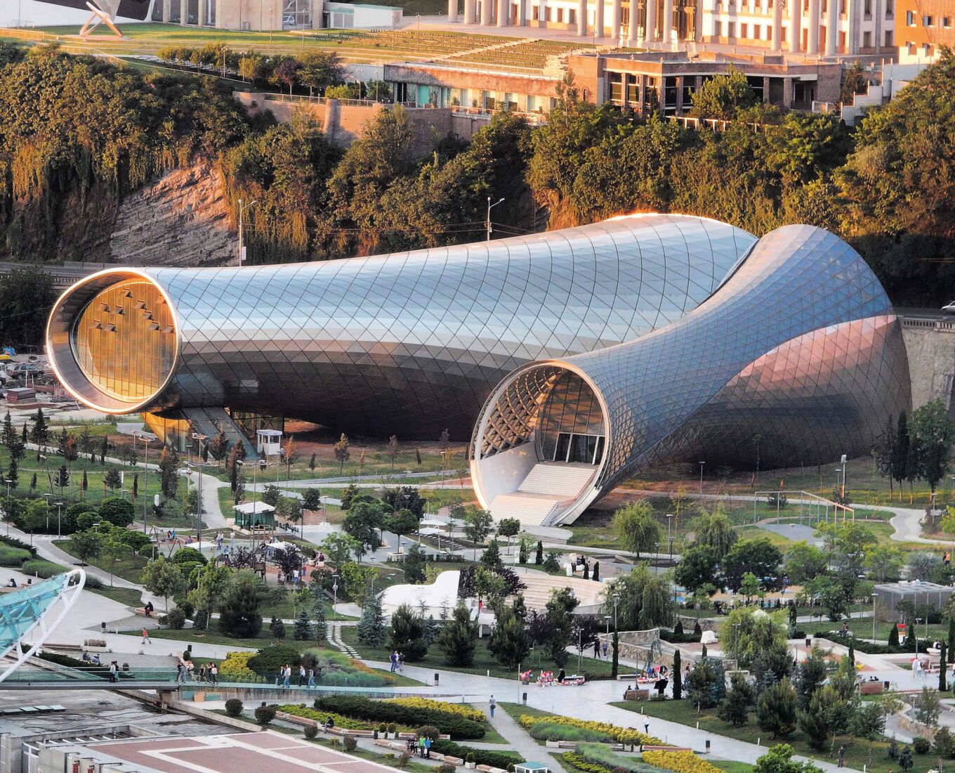 Театр і виставковий хол у Тбілісі із залом на 566 осіб. Спроєктований у вигляді двох акуратно вкладених циліндрів, що сходяться літерою V. 2018 р.