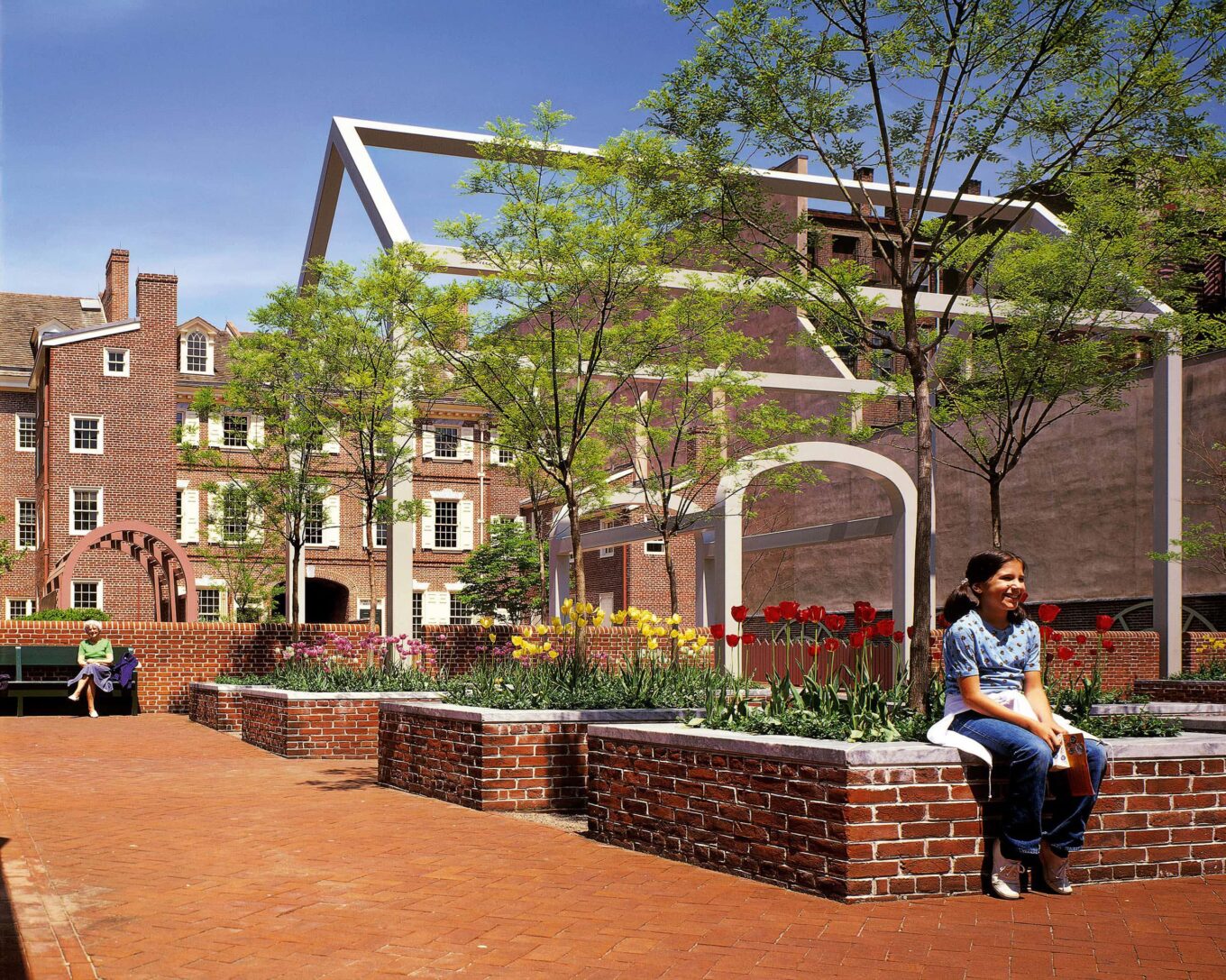 Так званий Дворик Франкліна в Національному історичному парку Індепенденс у Філадельфії прикрашають «примарні структури» за проєктом Вентурі і Скотт Браун — символи-нагадування про історичні будівлі, що стояли тут колись