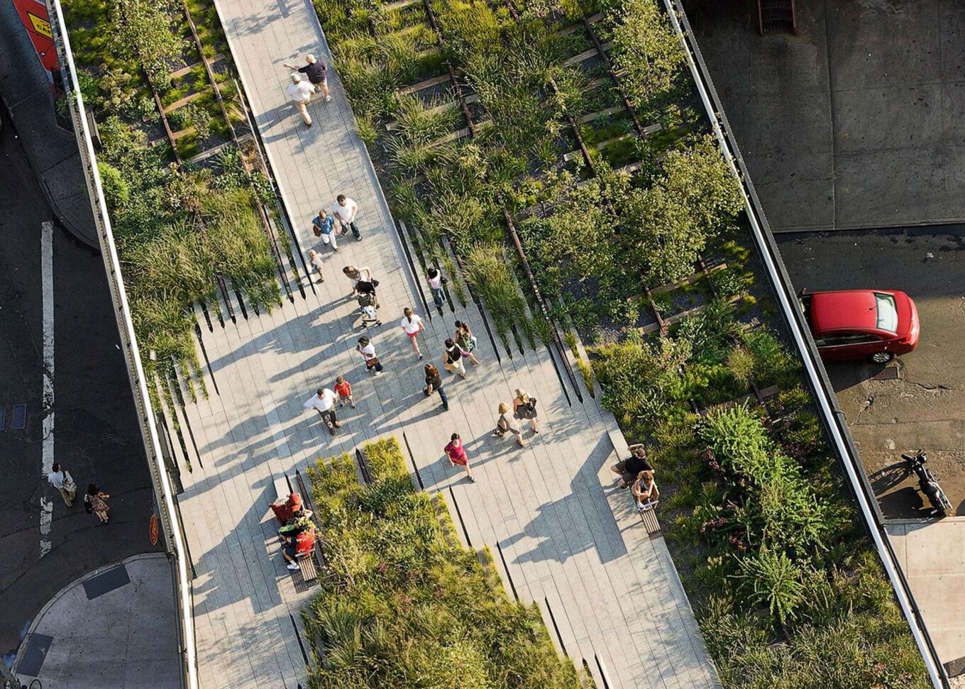 Вид зверху на парк Хай-Лайн, облаштований на місці старої занедбаної залізничної естакади мангеттенського Вест-Сайду. Джерело фото: dsrny.com