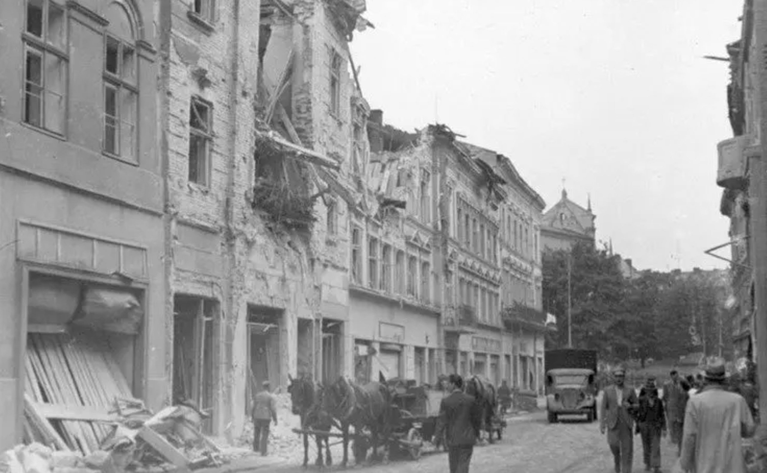 Архівне фото будівель на вулиці Петра Дорошенка у Львові, що були пошкоджені під час Другої світової війни. Джерело зображення: Facebook Антона Коломєйцева