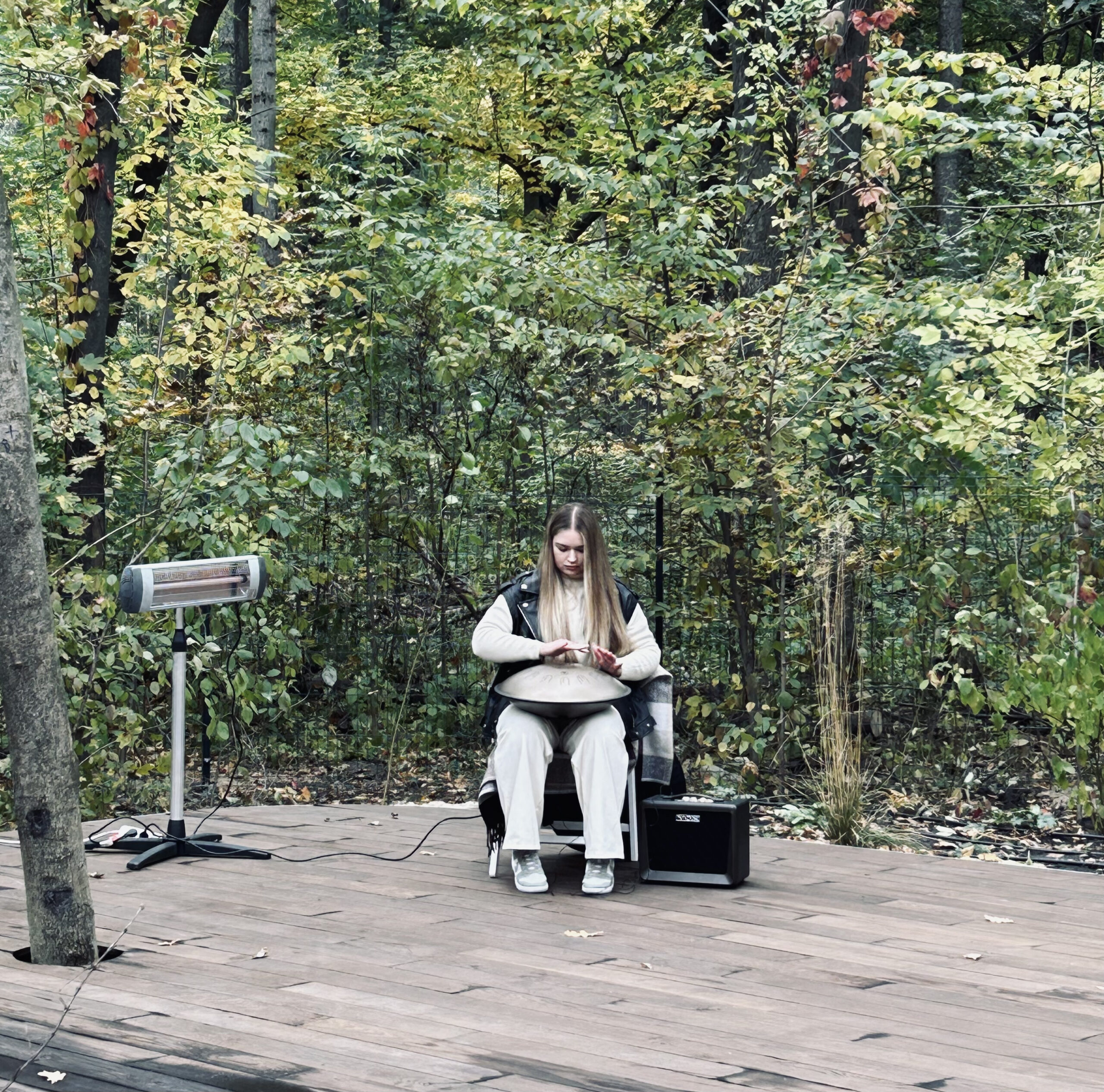 Зона тілесної практики призначена для йоги та звукових терапій. «Коло тепла» — простір для дружнього спілкування біля вогнища, що сприяє відновленню соціальних зв’язків та емоційній підтримці; із часом зелені насадження довкола цієї зони створять ефект «зеленої кімнати», посилюючи відчуття безпеки та контролю.