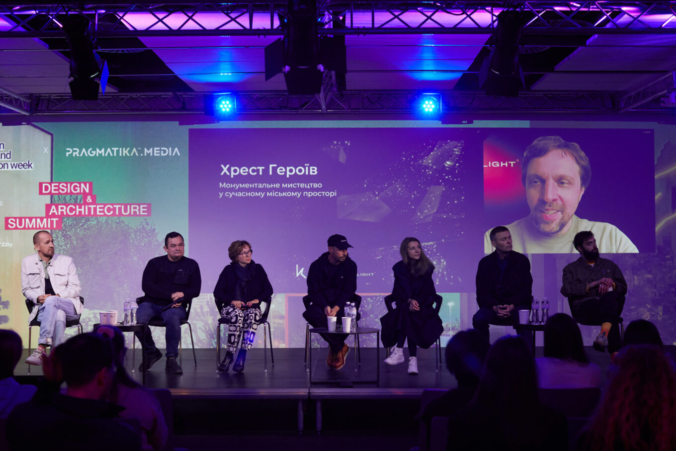 Дискусія про монументальне мистецтво: Юрій Мирко (GORN Ceramics), Святослав Шилін (BUDZIRKA), Тетяна Калита (Міжнародний інститут культурної дипломатії), митці Олексій Сай, Світлана Ратошнюк, Олексій Аполлонов, Богдан Кривошея (GORN Ceramics) та Микола Каблука (Expolight, Kabluka Light & Digital Sculptures)