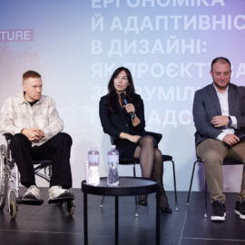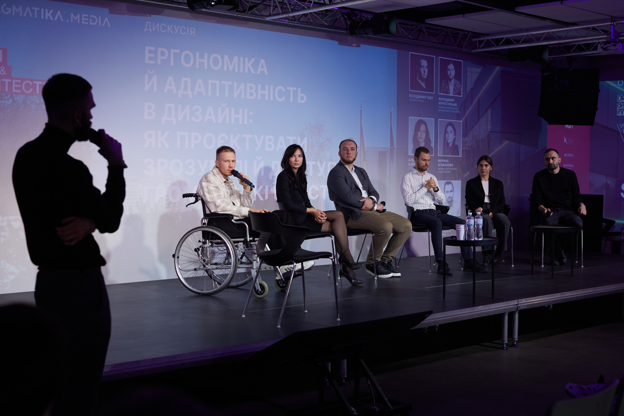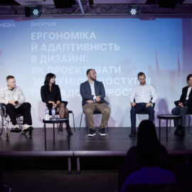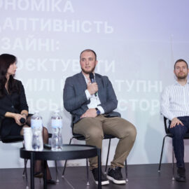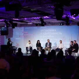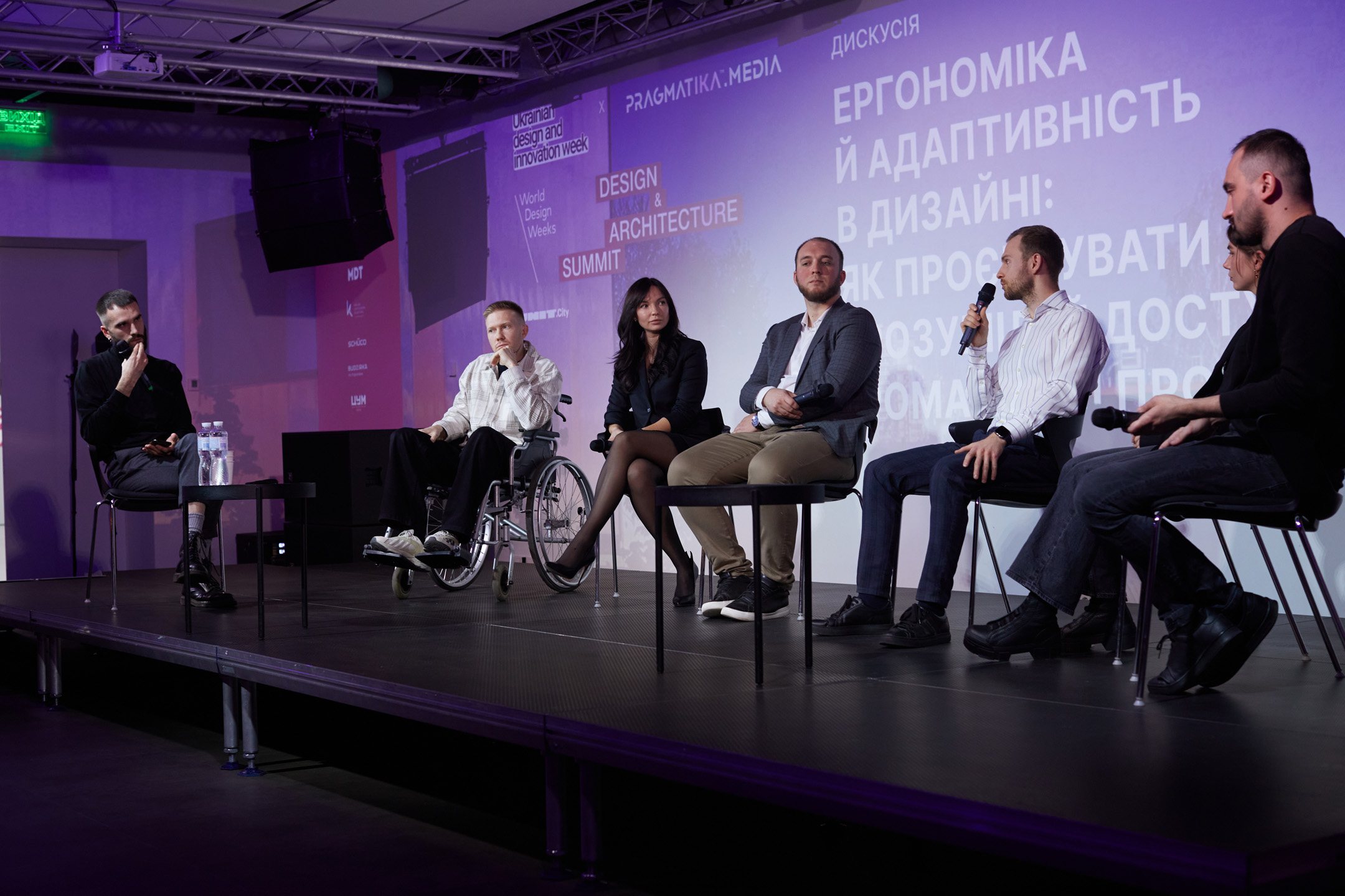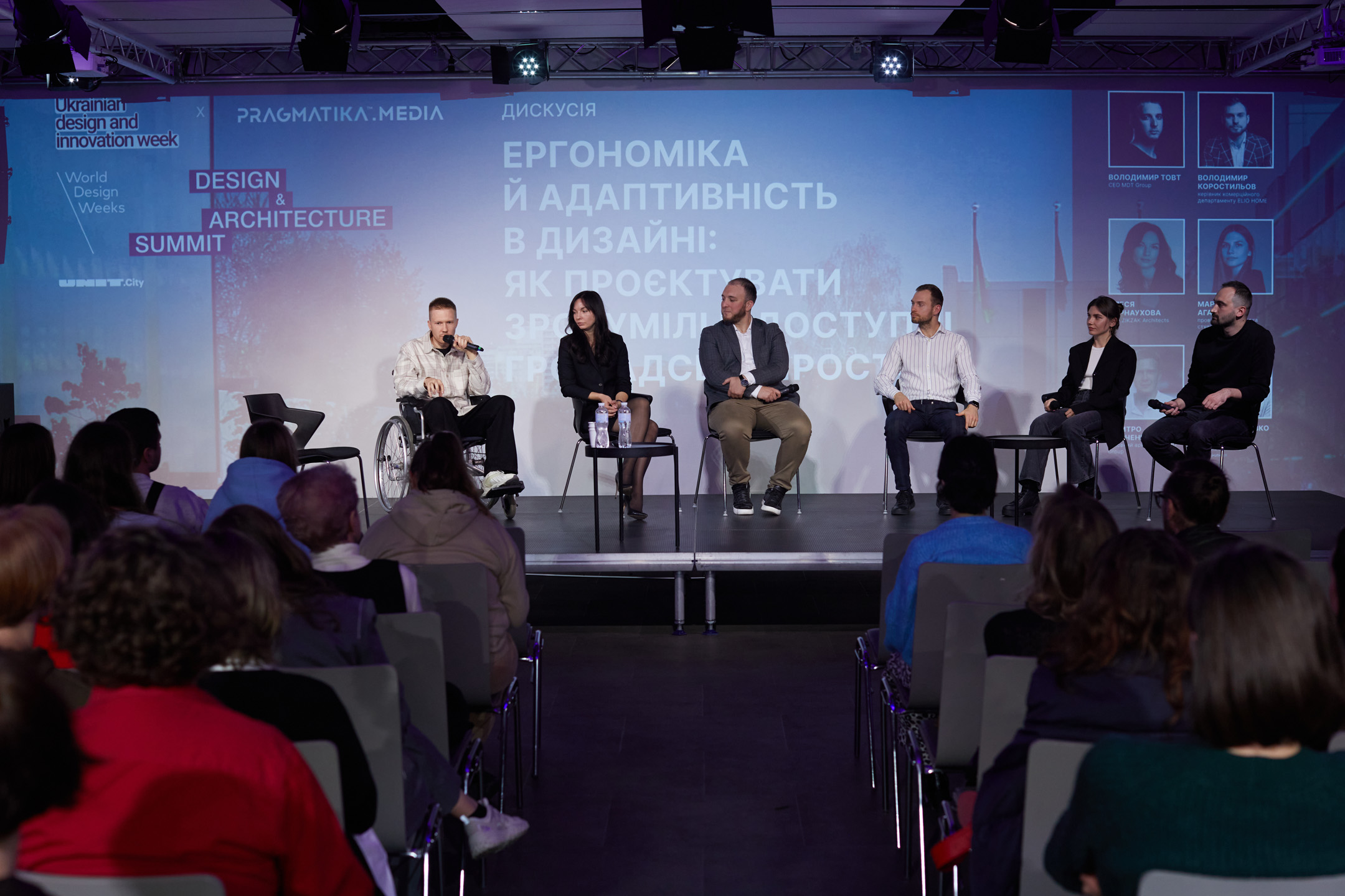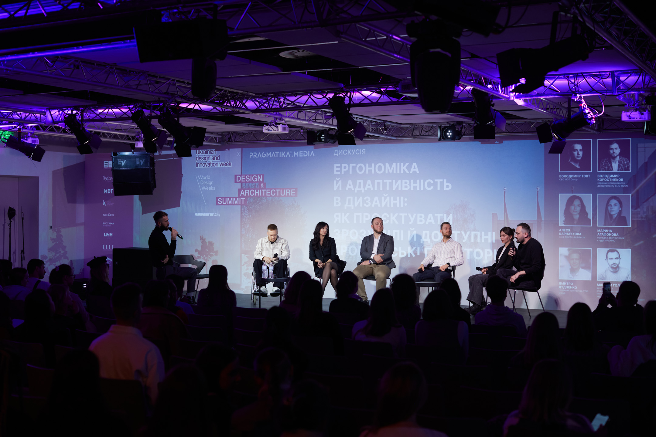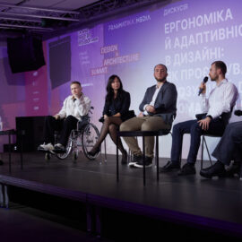 Про актуальність безбар’єрного середовища в Україні у своїй доповіді говорила Вікторія Тітова, CEO урбан-бюро Big City Lab. Вікторія розповіла про принципи універсального дизайну безбар’єрних просторів, а також згадала про досвід Парижа в облаштуванні доступного міста. Тему доступності продовжили під час дискусії «Ергономіка й адаптивність у дизайні: як проєктувати зрозумілі й доступні громадські простори». Про головні проблеми сучасних громадських просторів, про те, як так склалося, що вони стали негнучкими та чому їх треба перетворювати на багатофункціональні, говорили разом з архітектором і засновником громадської організації «Урбанина» Максимом Головком, головним архітектором YOD Group Дмитром Дудченком, СЕО ZIKZAK Architects Алесею Карнауховою, провідною архітекторкою студії MAKHNO Мариною Агафоновою, керівником комерційного департаменту бренду ELIO HOME Володимиром Коростильовим та CEO MDT Group Володимиром Товтом.