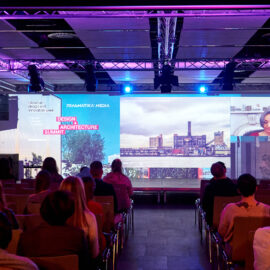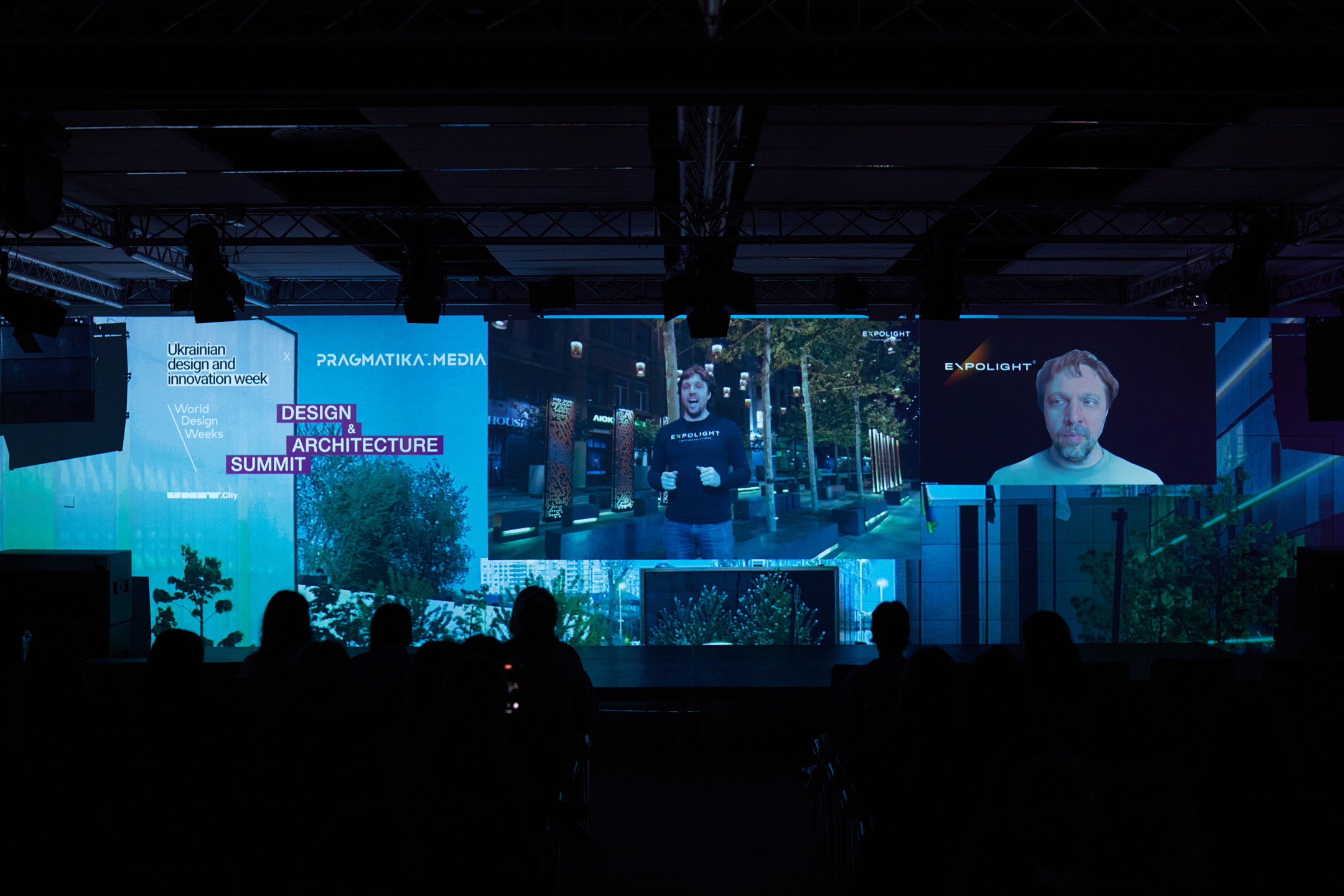 У другій половині дня до саміту відеозв’язком із Нідерландів доєдналась архітекторка MVRDV Євгенія Коваль. У доповіді «Sustainability vs reality: чи можлива стійка архітектура в умовах повоєнної відбудови?» Євгенія розповіла, як провідні архітектурні бюро сьогодні розробляють та втілюють сталі екологічні архітектурні проєкти. Ще один спікер, який долучився онлайн, — Микола Каблука, засновник компанії Expolight та бренду Kabluka Light & Digital Sculptures. На прикладі своїх проєктів освітлення меморіальних комплексів і місць пам’яті Микола показав, як світло може ставати виразним архітектурним інструментом.
