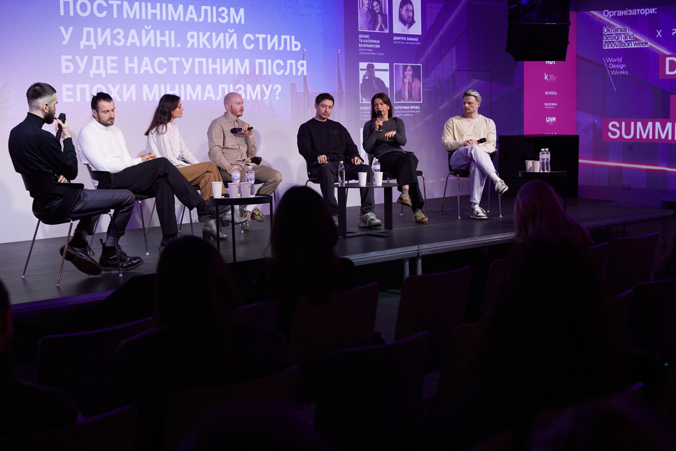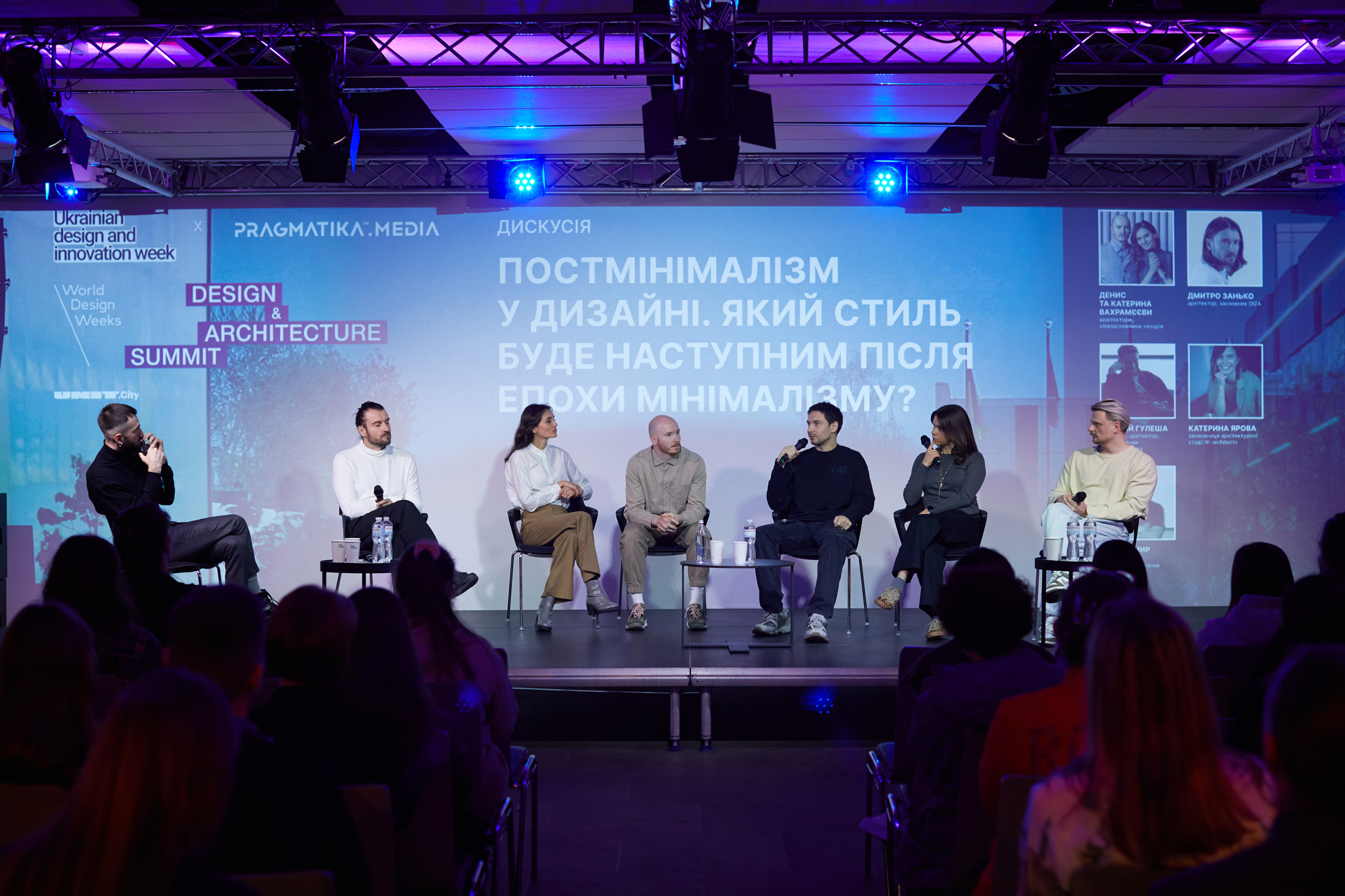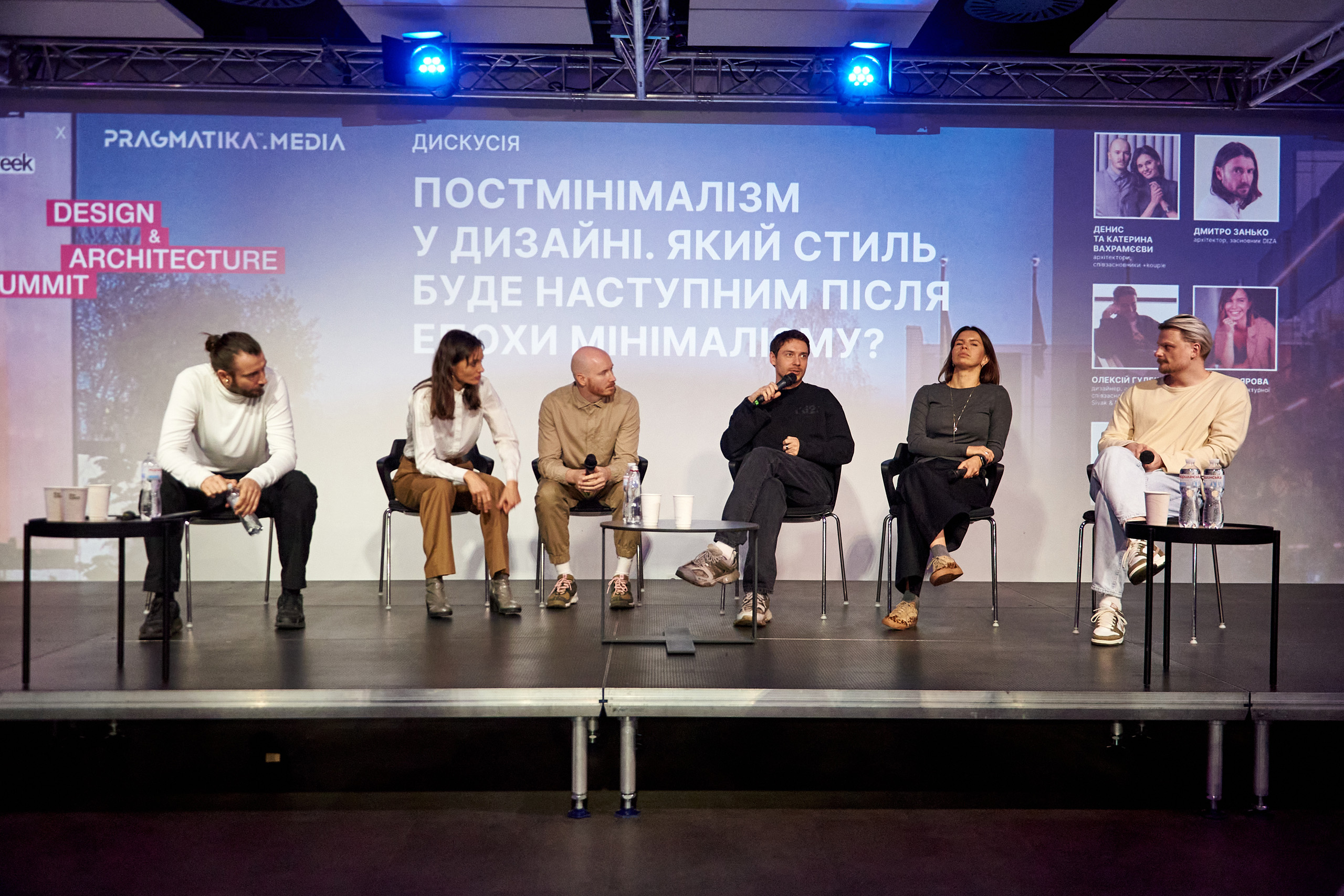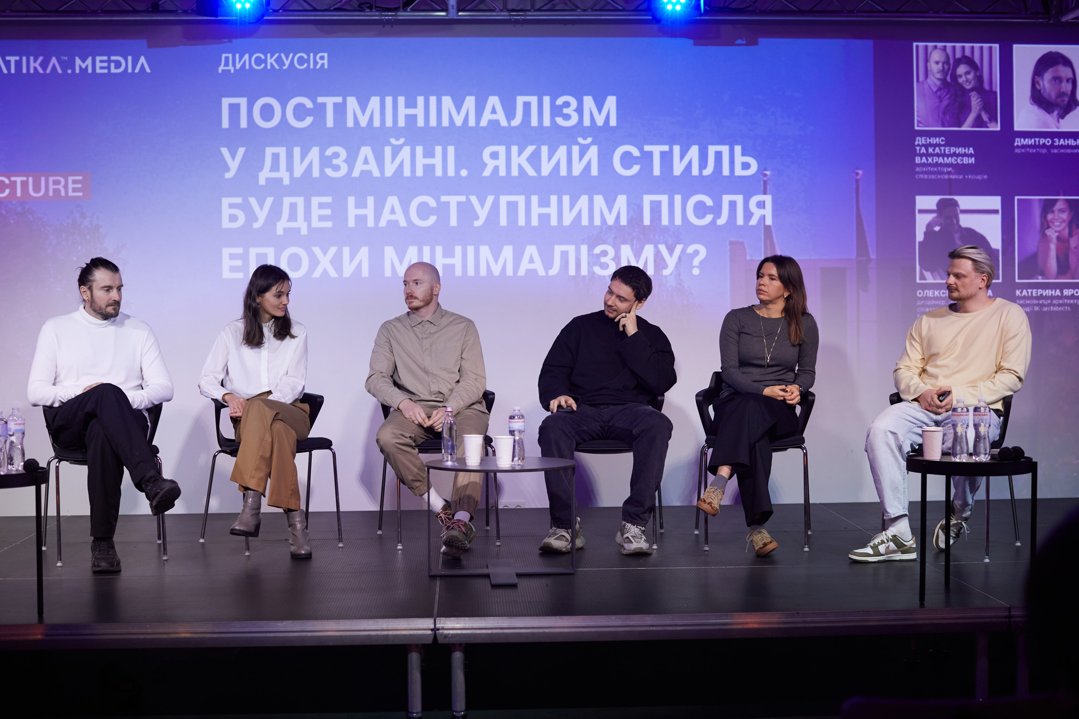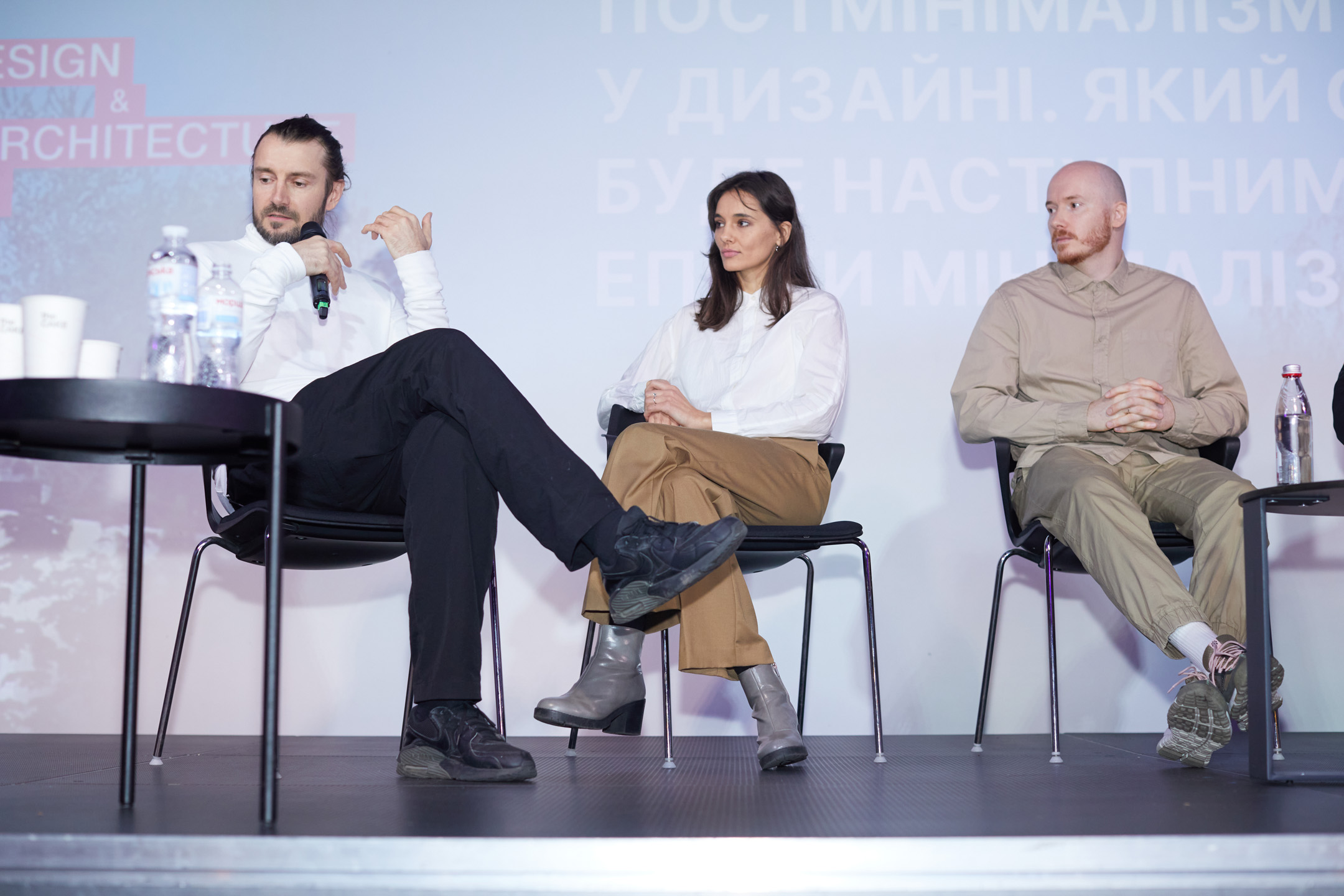 Під час дискусії «Постмінімалізм у дизайні. Який стиль буде наступним після епохи мінімалізму?» спробували спрогнозувати, що чекає нішу інтер’єрного та предметного дизайну в Україні. Відповіді на питання допомагали шукати співзасновник і дизайнер Sivak + Partners Олексій Гулеша, засновники студії +kouple Денис та Катерина Вахрамєєви, засновник бренду DIZA Дмитро Занько, засновниця архітектурного бюро IK-architects Катерина Ярова та засновник дизайн-студії ONE MORE BURO Володимир Васюк.