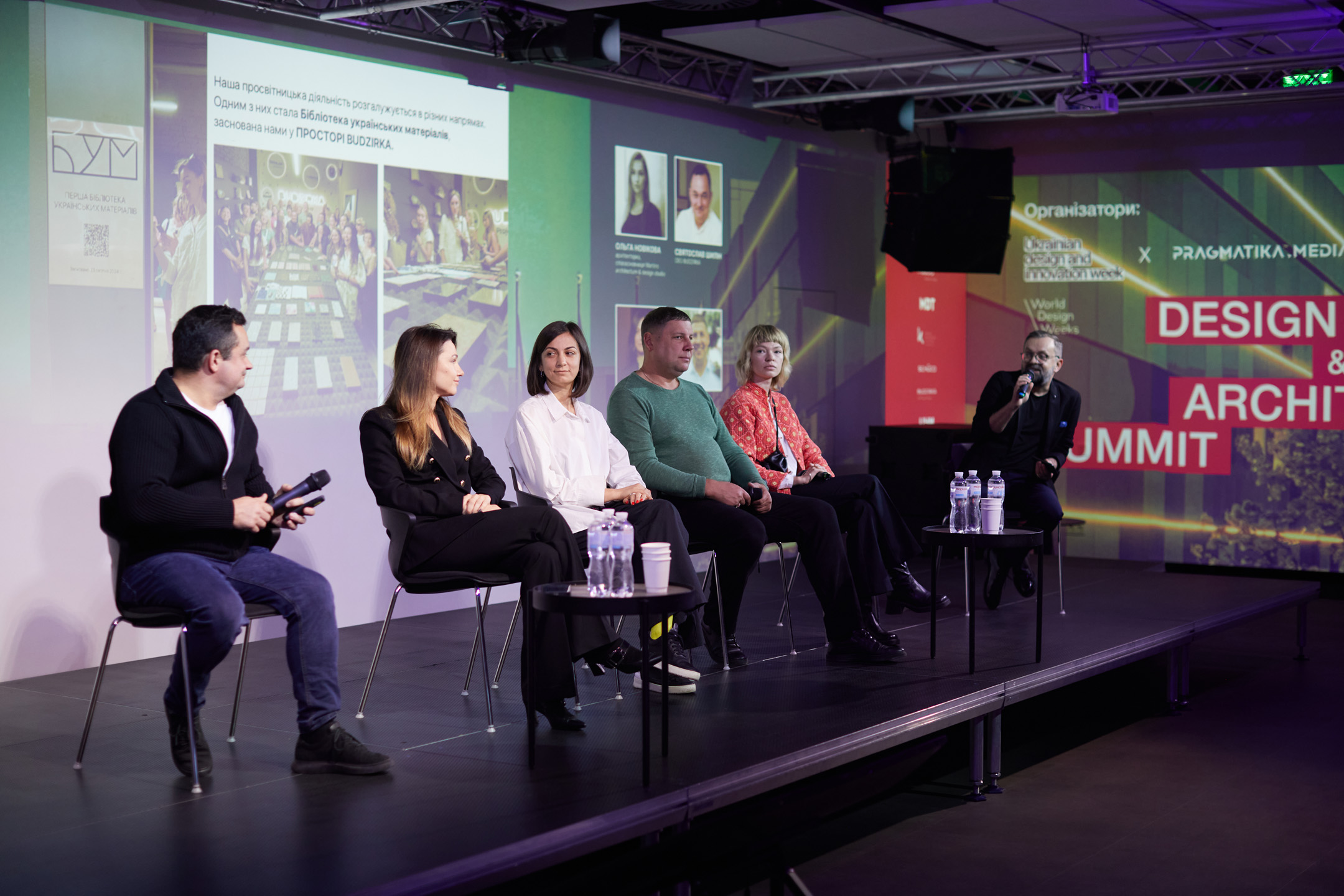 Другий день саміту розпочався дискусійною панеллю, під час якої обговорювали феномен Бібліотеки українських матеріалів у дизайні та архітектурі, яка відкрилась у просторі BUDZIRKA. Своїми роздумами ділились: Святослав Шилін, СЕО BUDZIRKA; Ольга Новікова, архітекторка, співзасновниця Martins architecture & design studio; Анаіт Данієлян, архітекторка, засновниця Danielian Bureau; Сергій Бойко (Hempire) та Олександра Попруга, засновниця дизайн-студії Anumo Plastic.