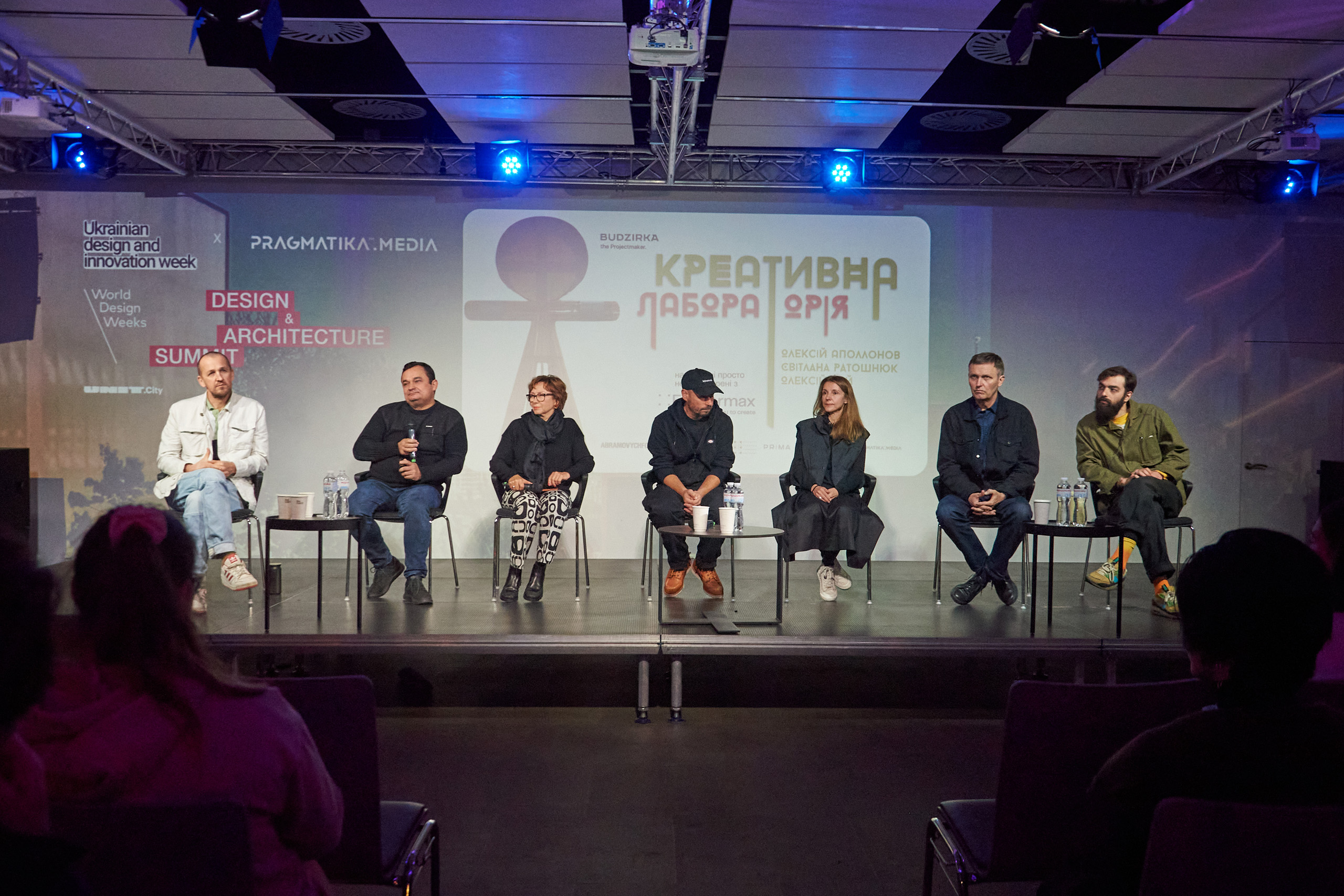 Учасники дискусійної панелі про українську спадщину, співзасновники Ukrainian Design and Innovation Week та команда PRAGMATIKA.MEDIA