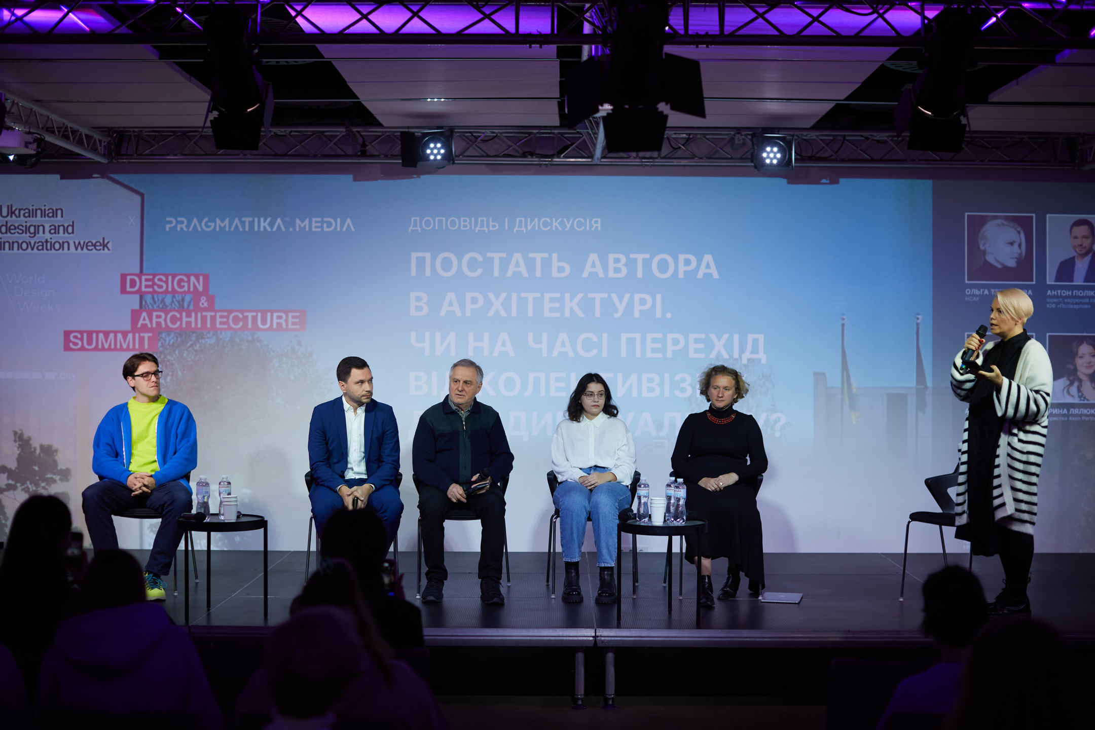 Проблеми авторського права в архітектурі та роль архітектора в містобудуванні обговорили під час дискусії «Постать автора в архітектурі. Чи на часі перехід від колективізму до індивідуалізму?» Спікерами виступили юрист, керівний партнер ЮФ «Полікарпов» Антон Полікарпов, архітектор, керівник архітектурної майстерні АБК «Жежерін» Вадим Жежерін, засновниця FPA-architect Ольга Подушкіна, архітекторка та народна депутатка України IX скликання Ганна Бондар, юристка Axon Partners Ірина Лялюк та партнер Axon Partners Михайло Юдін.