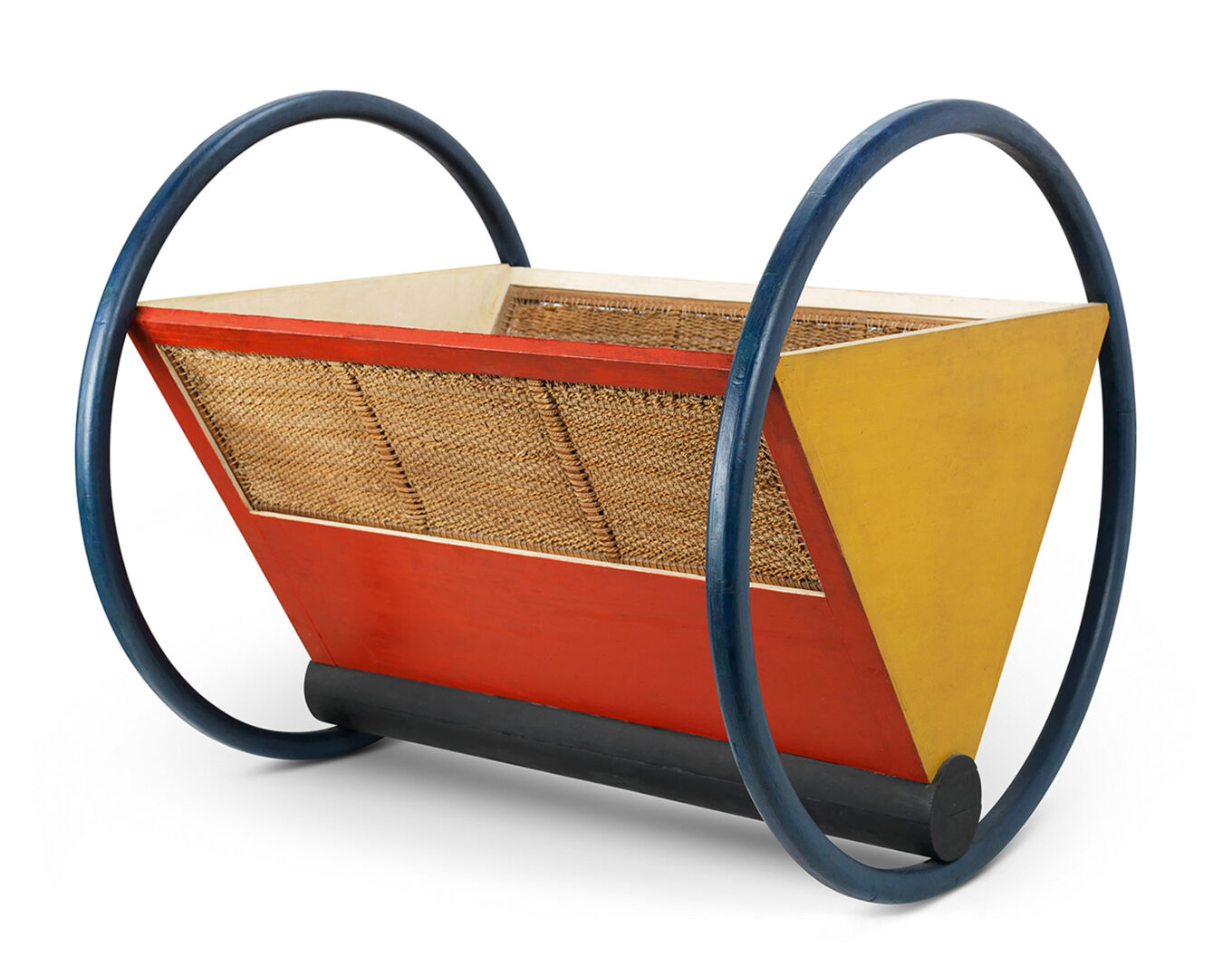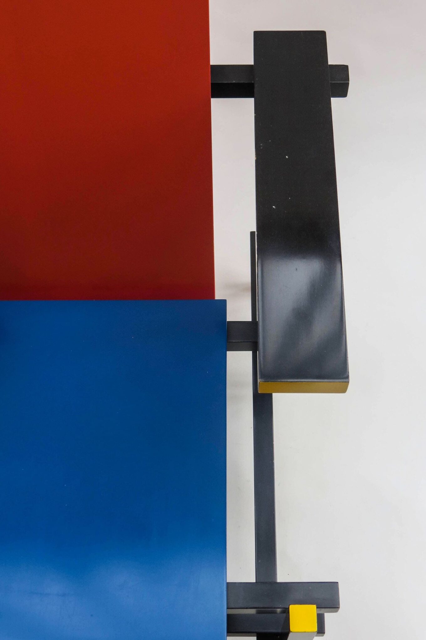 Фрагмент винтажной версии стула Red Blue Chair по дизайну Геррита Ритвельда, выпущенной фабрикой Cassina. Оригинал автор разработал в 1918 г., а его цветной «формат» появился в 1923-м под влиянием творчества Пита Мондриана