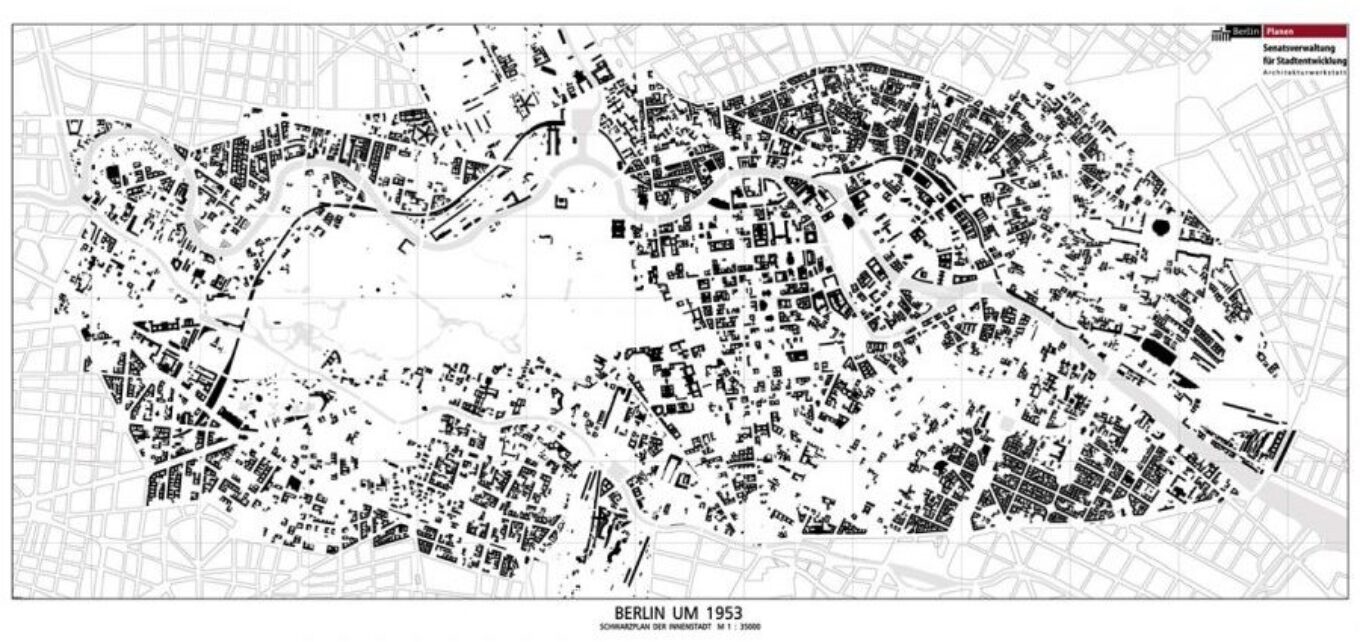На плані Берліна 1989 року ми бачимо, що його тканина змінюється: всюди виникають модерністські структури — комплекси, для яких характерні відкриті простори, великі лаконічні форми, які суперечать масштабу довколишньої історичної забудови.