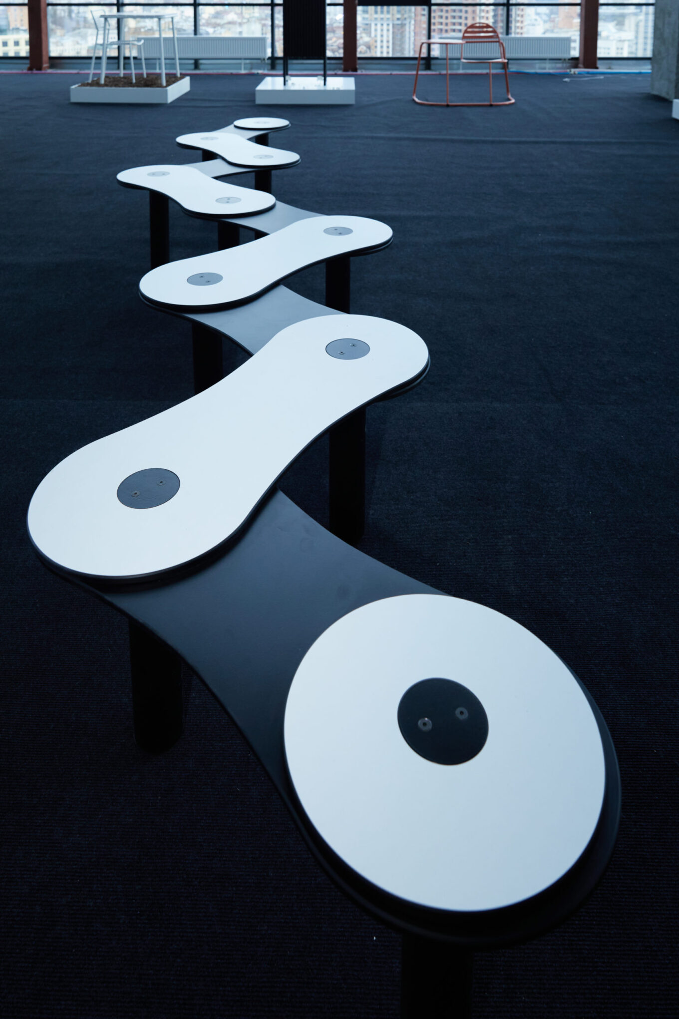 Власне MiMi Fabryka, яка розробляє міські колекції об’єктів на основі прототипів всесвітньо відомих дизайнерів, у рамках експозиції презентувала вуличний стілець Bone авторства данського дизайнера Джулієна де Смедта, а український виробник і дизайн-студія Vyоurock — безпечні outdoor меблі, які мають мінімум елементів із гострими та небезпечними кутами й водночас декілька конфігурацій.