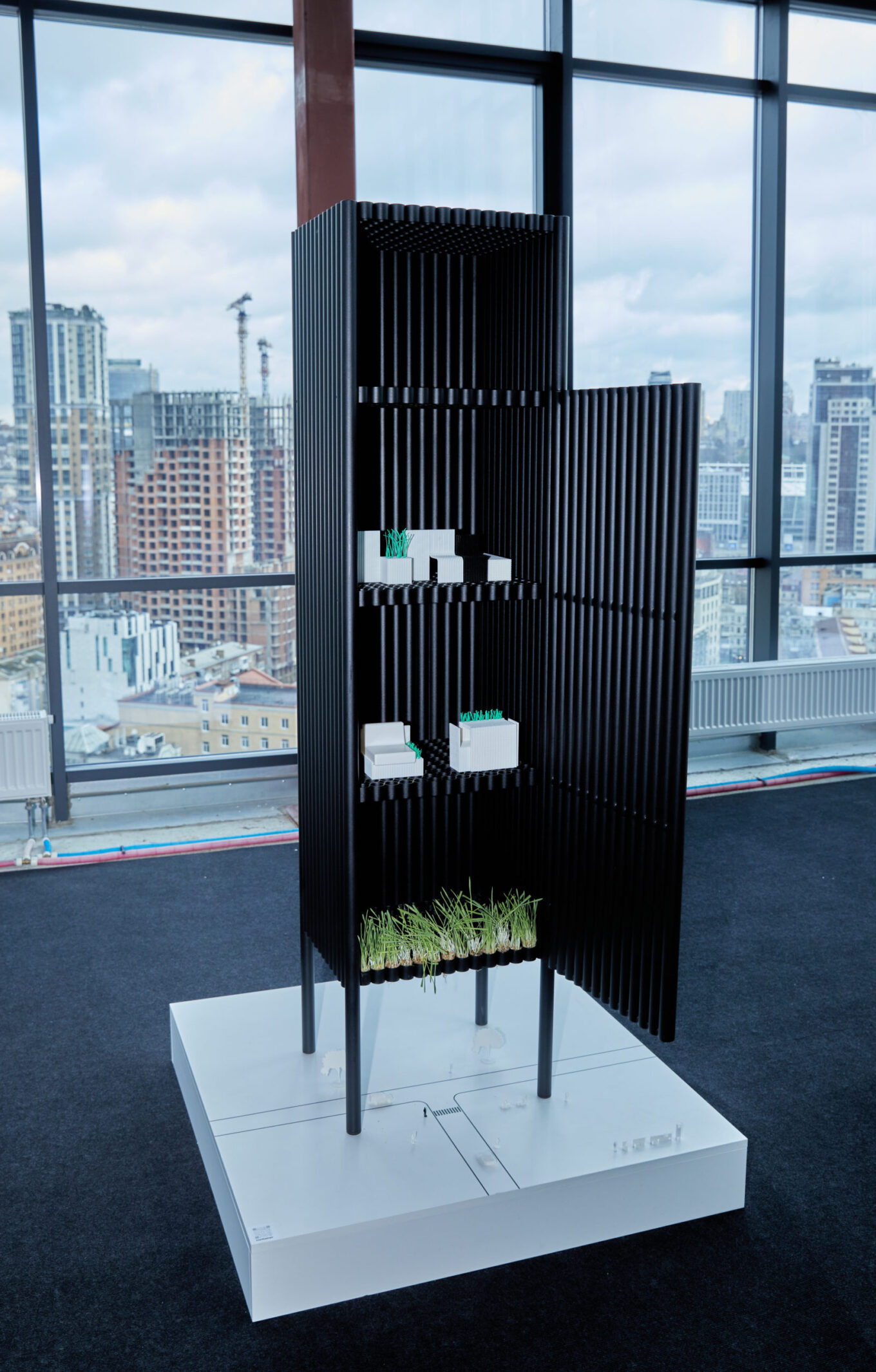 «У сучасних містах поєднуються планування та імпровізація, історія та майбутнє, візуальне та емоційне, знання та вулична мудрість. Наші соціальні мережі повинні створюватись у реальному світі, ми всі є частиною однієї, спільно витканої тканини. Комфортні та безпечні міські простори впливають на цей процес, — розповідає Лариса Цибіна. — Щоб підсилити важливість функціональних об’єктів у міському середовищі, ми в рамках Архітектурного MeetUp’у створили експозицію, свідомо перевернувши масштабування, де речі стають більшими й вищими за місто».