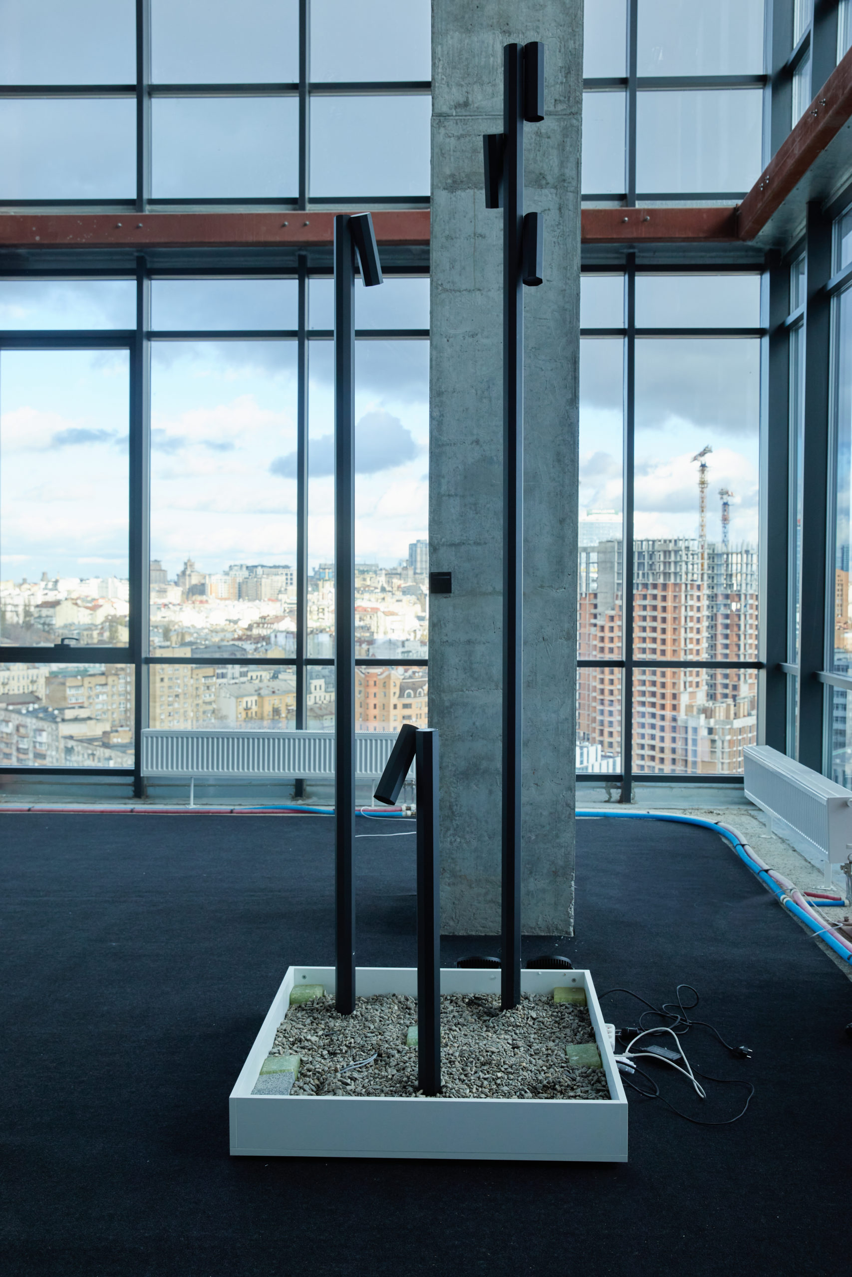 «Все, що потрібно було зробити, — візуально передати максимально легке сприйняття предметів на тлі захоплюючої міської панорами. Ніщо ні з чим не має конфліктувати. Це діалог і продовження, артикулювання меншого й більшого і просто впорядкування. Нам пощастило з простором. Високі стелі, величезна площа скління, бетон, цегла та суцільна текстура виду на жвавий Київ. Це дуже вдало лягло в концепцію urban-тематики Архітектурного MeetUp’у. Лишилось просто “причесати” поляну, “дати повітря” всьому, поставити світло і піти», — розповідає Євген Пукліч.