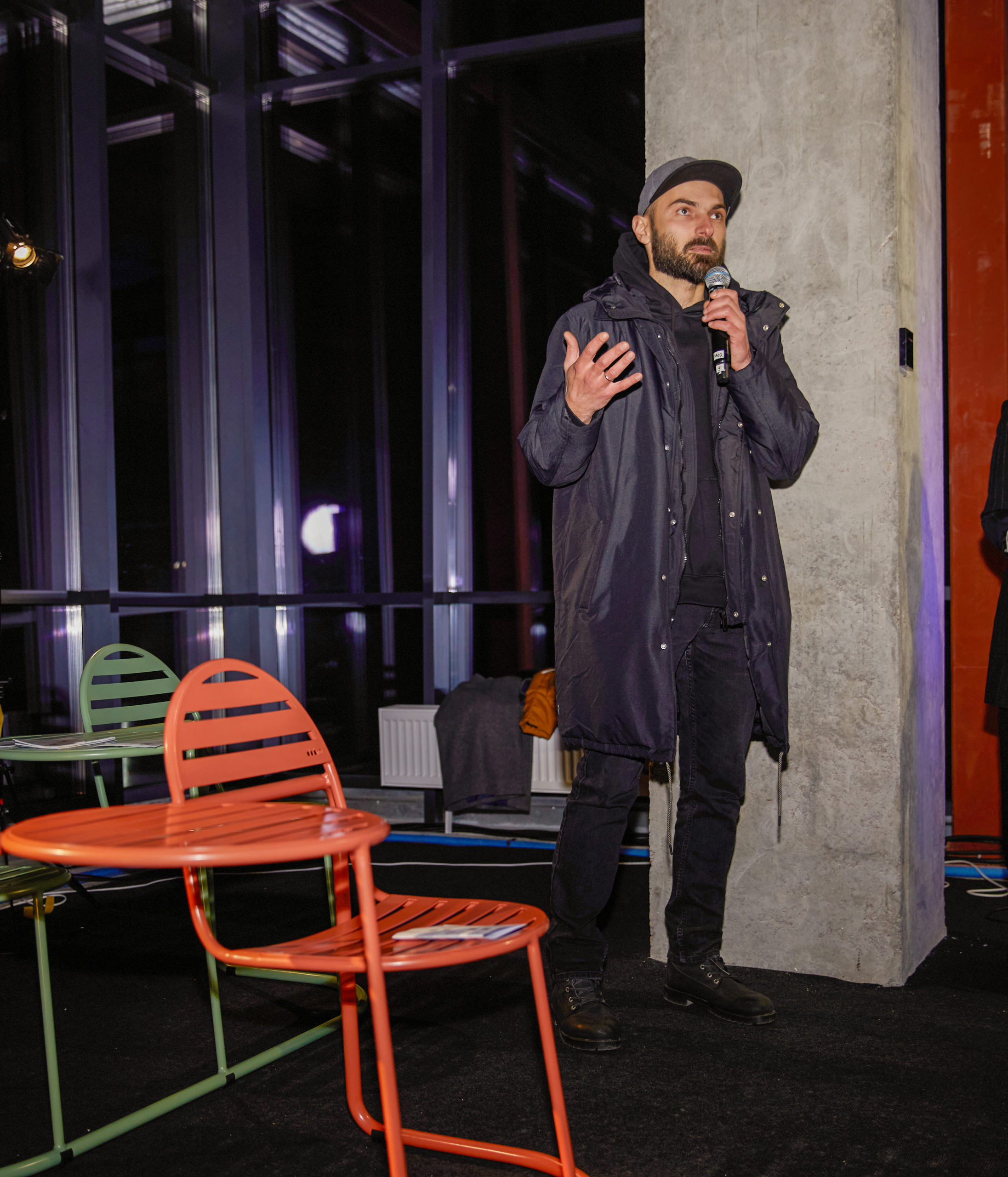 Експозицію, яка стала основним візуальним складником заходу, її кураторка та історикиня дизайну Лариса Цибіна доповнила авторською екскурсією для гостей. Разом з експонентами кураторка розповіла про дизайнерські об’єкти від вітчизняних брендів Vyourock, LOFU, Joyf, Panoptikum Collections, MiMi Fabryka, Container design studio, OdudLab та Dobro design, типології яких були обрані за принципом можливості застосування у спільних просторах і міському середовищі.