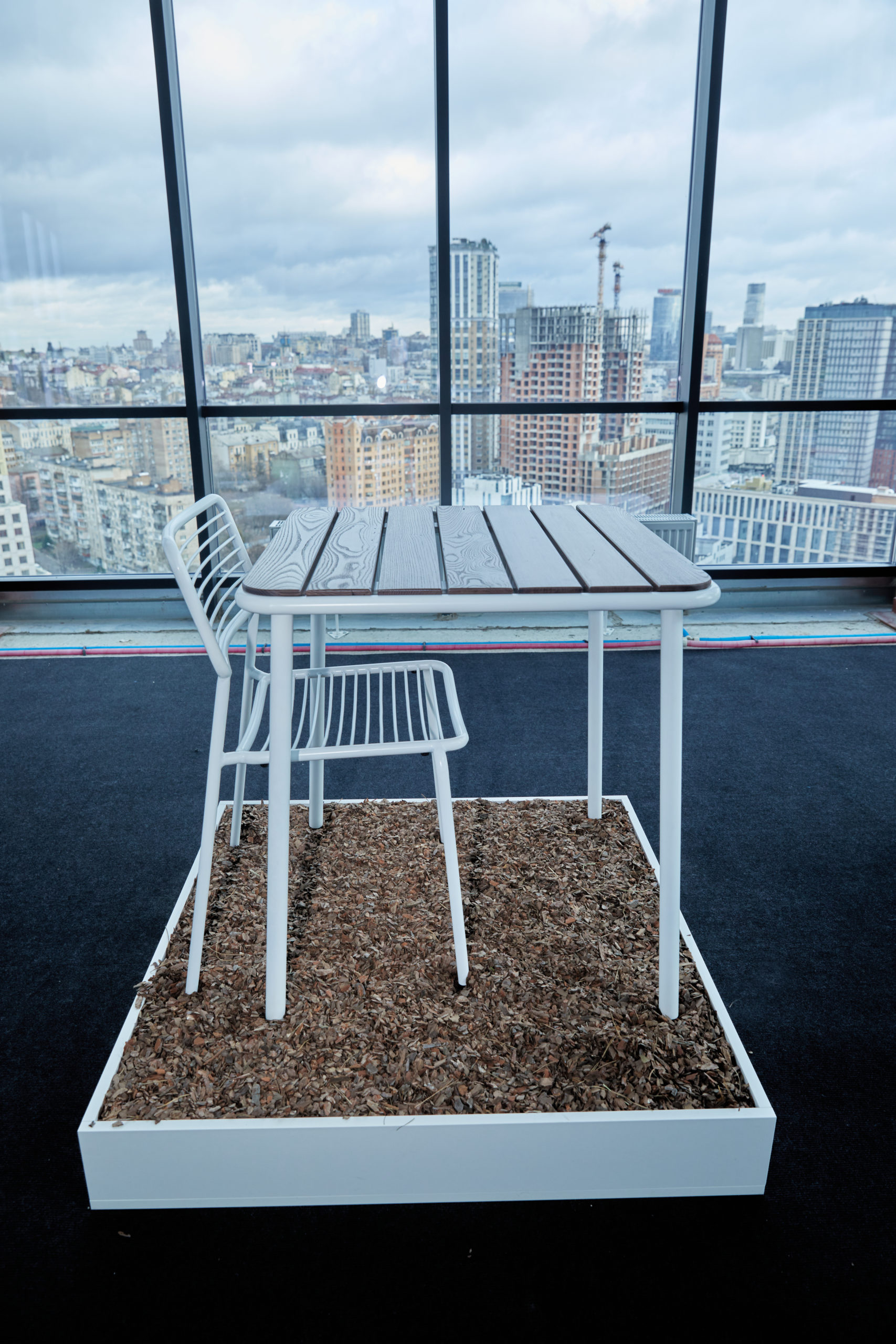 Власне MiMi Fabryka, яка розробляє міські колекції об’єктів на основі прототипів всесвітньо відомих дизайнерів, у рамках експозиції презентувала вуличний стілець Bone авторства данського дизайнера Джулієна де Смедта, а український виробник і дизайн-студія Vyоurock — безпечні outdoor меблі, які мають мінімум елементів із гострими та небезпечними кутами й водночас декілька конфігурацій.