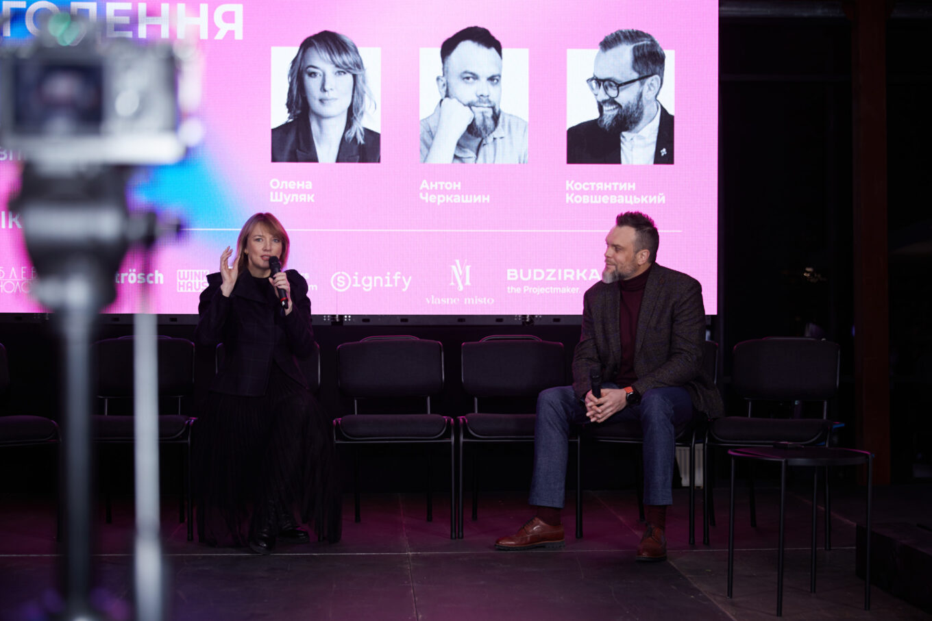 Першим у таймлайні вечора став батл — протистояння думок двох запрошених експертів: Олени Шуляк, голови Комітету з питань організації державної влади, самоврядування, регіонального розвитку та містобудування, і Антона Черкашина, архітектора, засновника та СЕО архітектурного бюро büro A24D