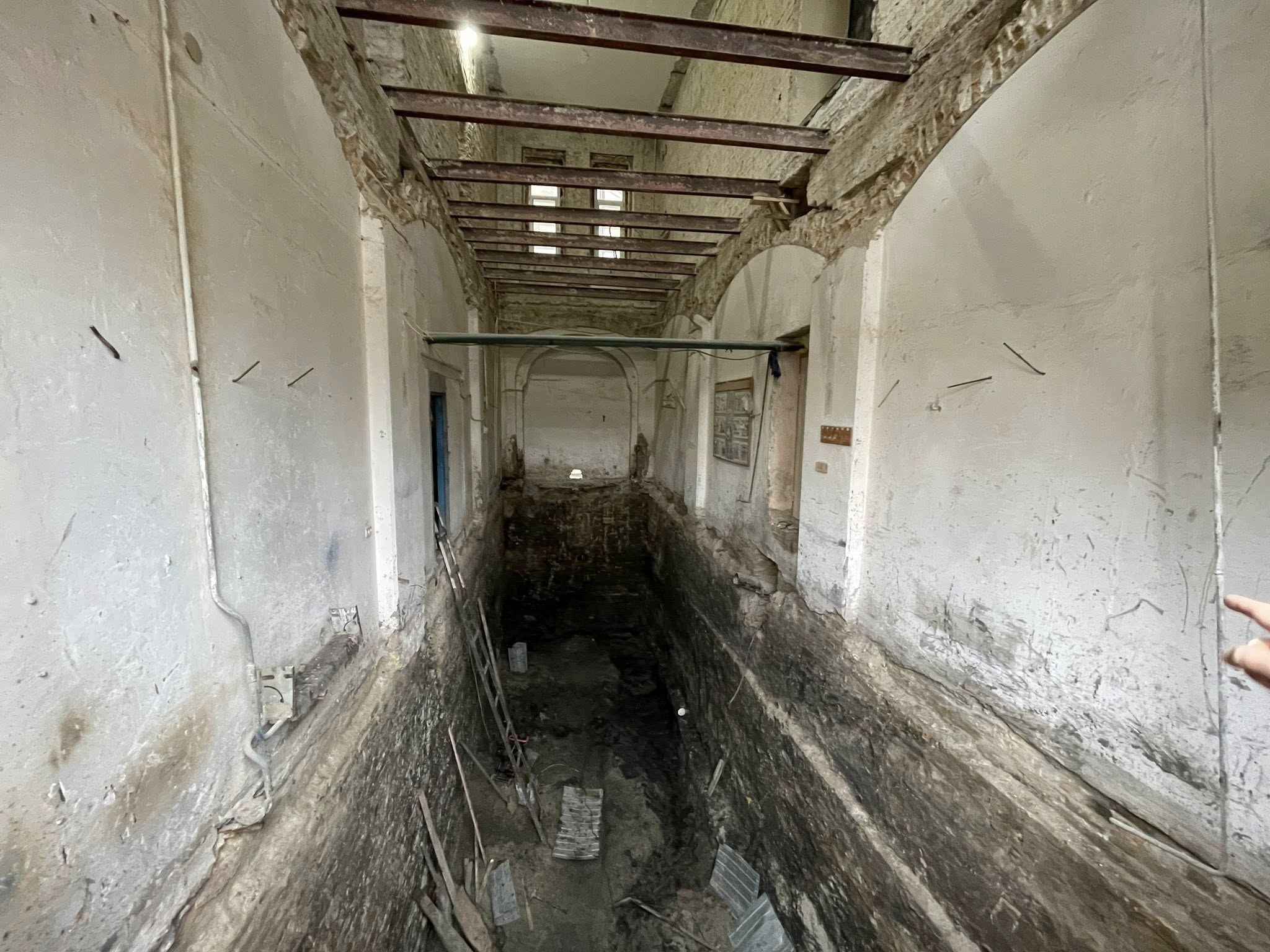 Підготовка до проведення робіт зі зміцнення фундаменту будівлі на Фролівській, 4. Фото надане Ars Longa