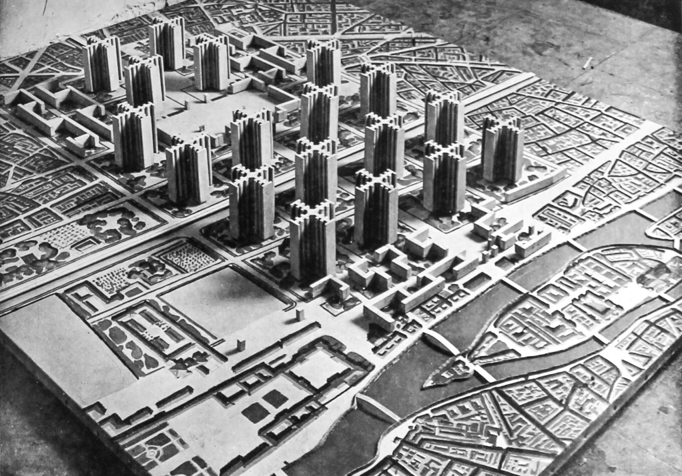 Ville Radieuse, проєкт Ле Корбюзьє з модернізації Парижа, який передбачав знесення історичних кварталів у центрі міста. На щастя, проєкт не був реалізований через вкрай негативну реакцію парижан. Фото: Wikipedia