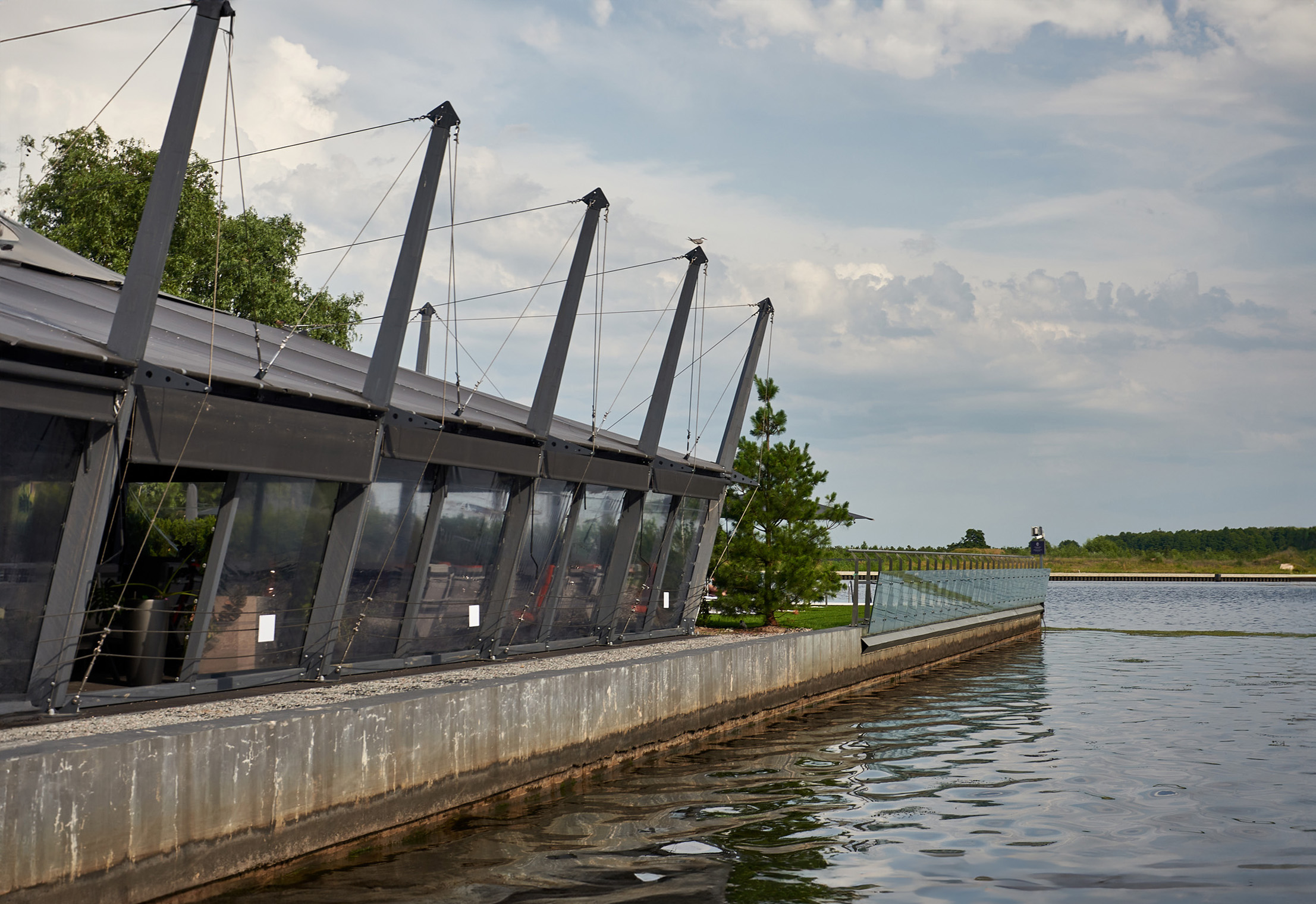 Територія була невелика, та з обмеженнями по ділянках, де дозволене будівництво. У цьому випадку було отримано дозвіл будувати капітальні будівлі за п’ять метрів від води, і замовник уже мав готовий пакет документів із генеральним планом і погодженнями. Це дозволило нам не обмежувати свою фантазію та спроєктувати низку цікавих об’єктів прямо біля води. Тим більше, я сам завзятий рибалка», — говорить Юрій.