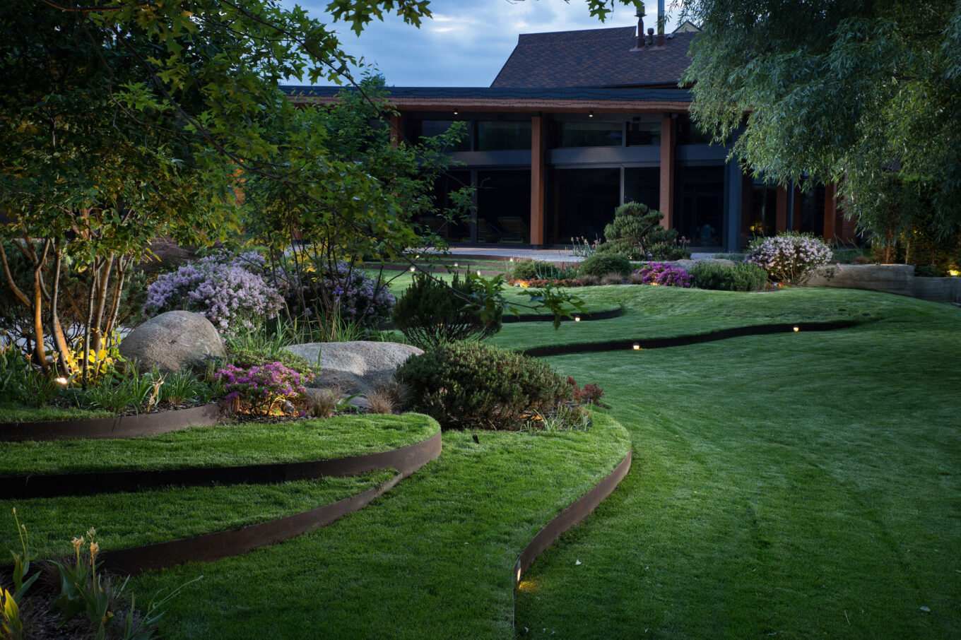 Пример работы с рельефом в саду. Частный сад, с. Подгорцы, Киевская обл. Beloded Landscaping, 2015—2017 гг. Источник фото: belodedlandscaping.com