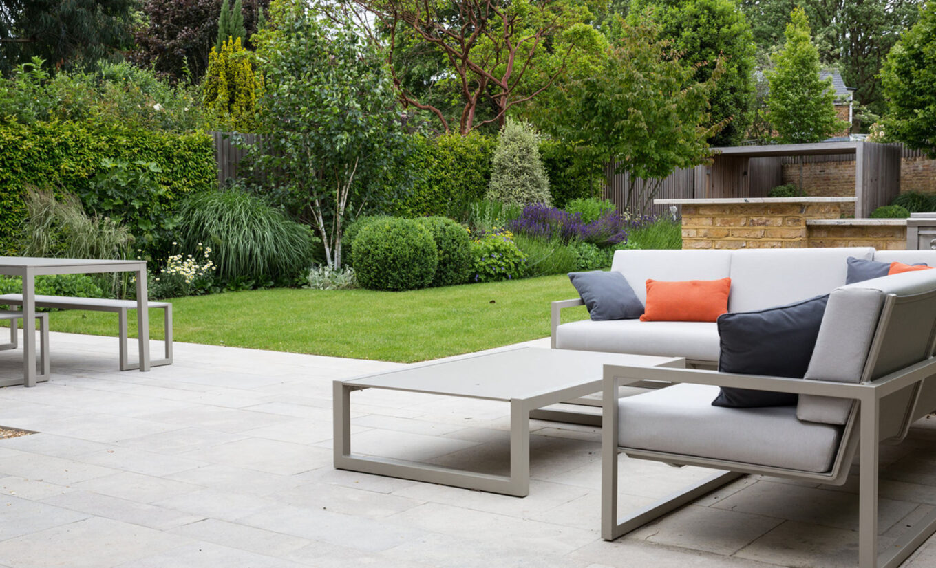 Скульптурный разноуровневый подиум для выделения интимной зоны в большом саду — решение от британского ландшафтного дизайнера Энди Стерджена. Источник фото: triumph-landscape.ru