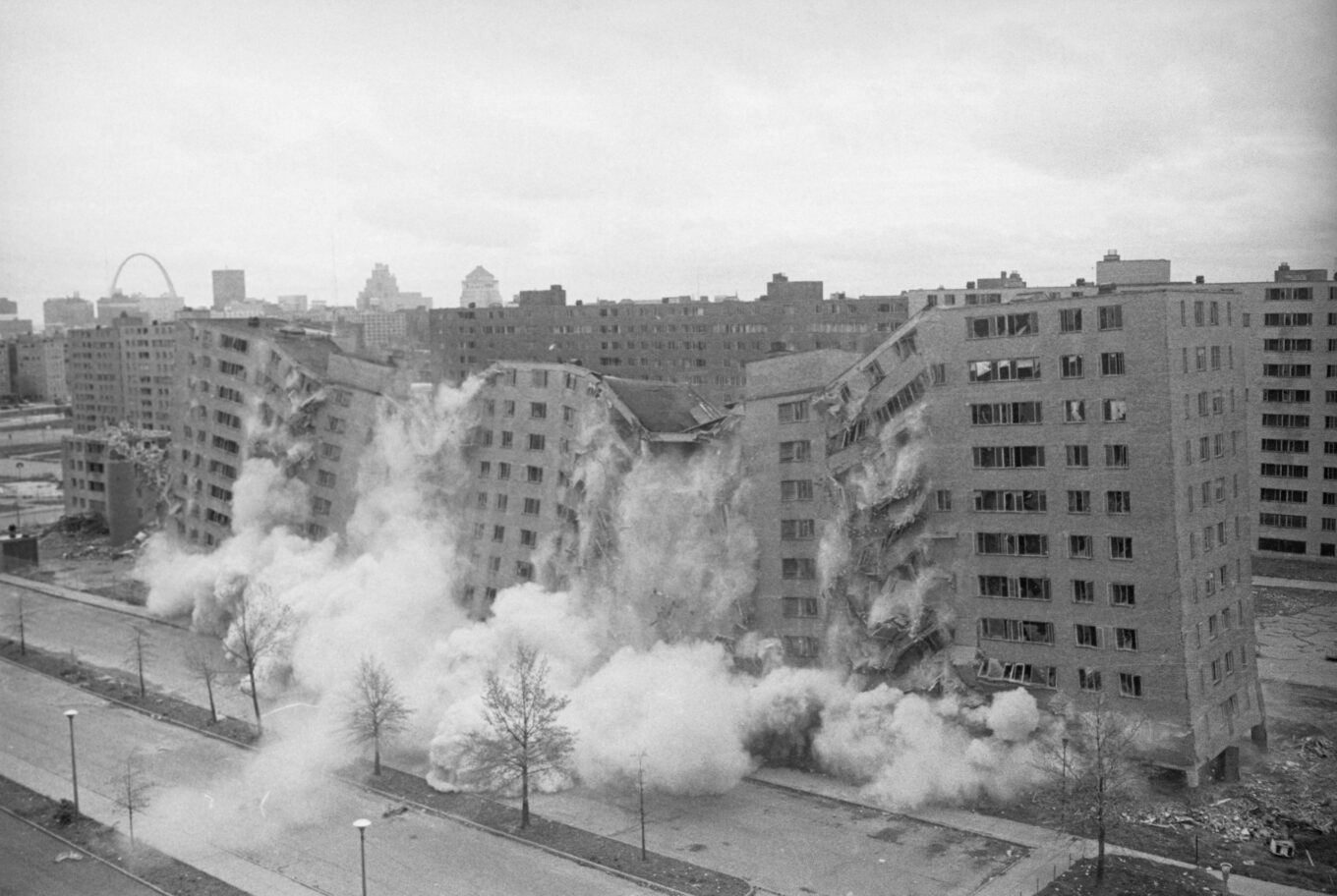 Знесення житлового комплексу Прюїтт-Ігоу у 1972 році. Джерело зображення: документальний фільм The Pruitt-Igoe Myth: An Urban History (2011)