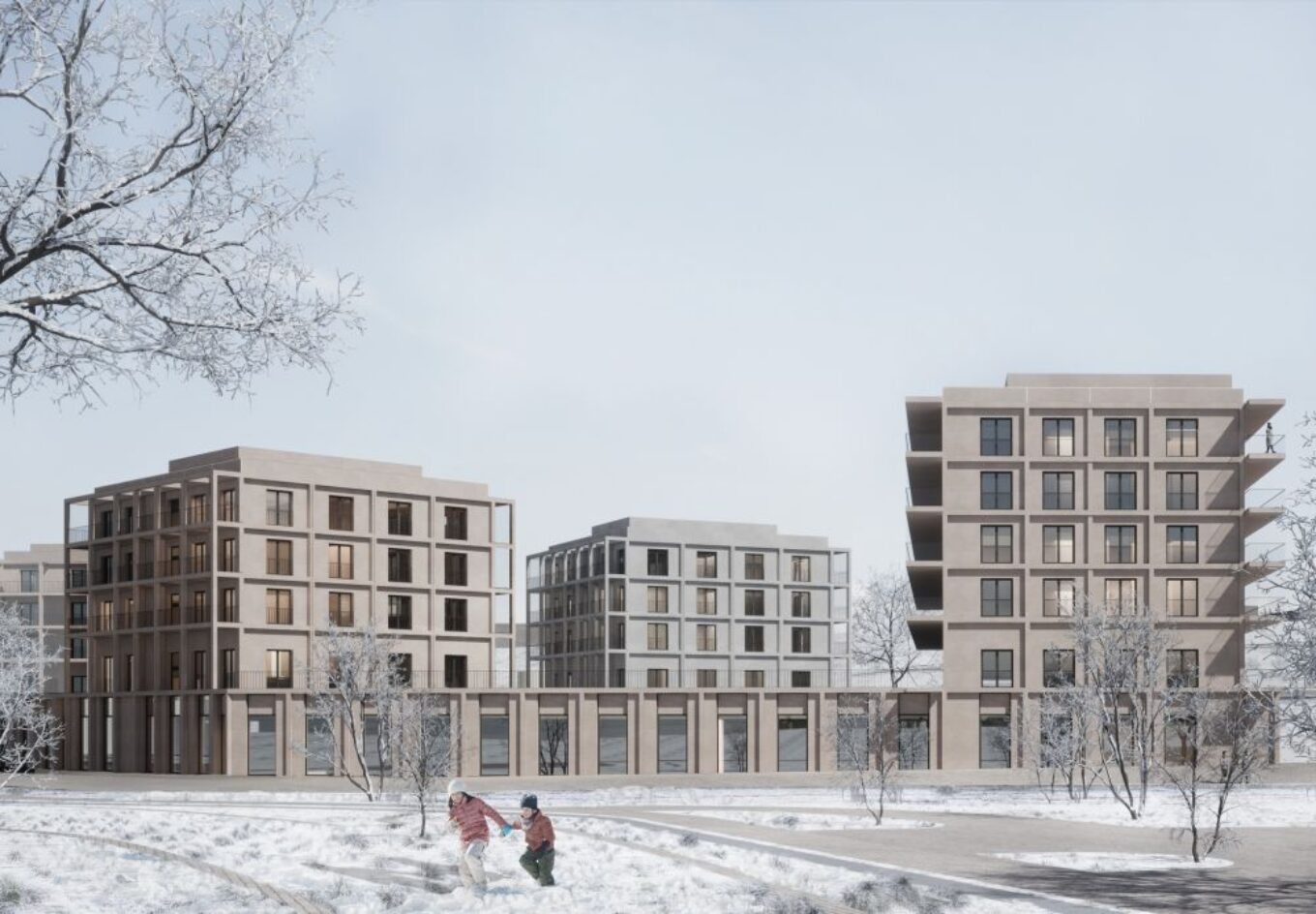 Візуалізації до проєкту будівництва муніципального житла для сімей пацієнтів, які проходять реабілітацію у центрі «Незламні», Львів. Джерело зображення: Drozdov & Partners