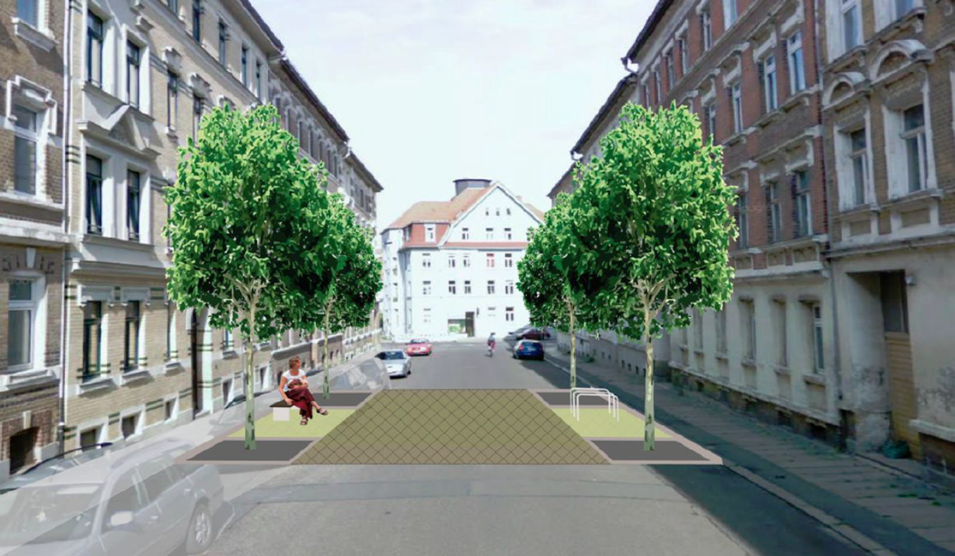 Пропозиція бюро Stadtlabor з модернізації вуличного простору на вулиці Georg-Schwarz-Straße, Лейпциг, Німеччина. Джерело зображення: stadtlabor.de