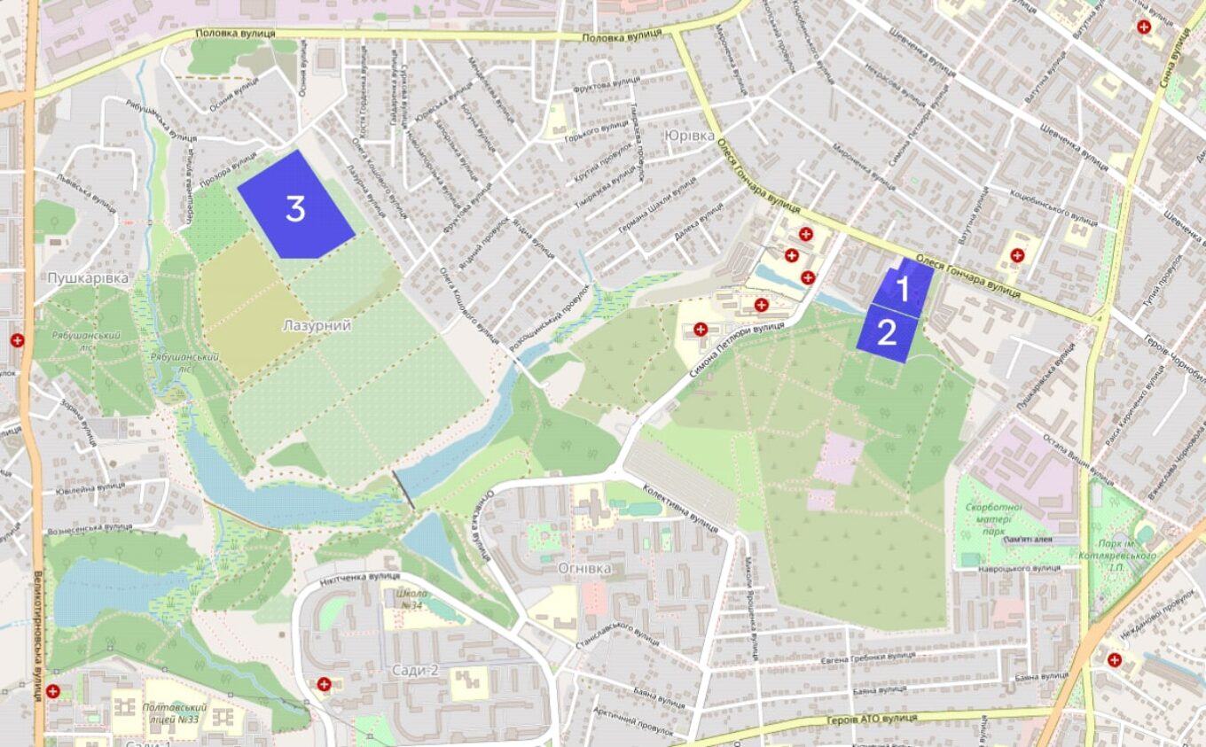 У Полтаві, згідно з інформацією, оприлюдненою в «Урядовому кур’єрі», під нове будівництво багатоквартирних будинків для переселенців виділили 7 гектарів на вулиці Лазурній. Ця ділянка знаходиться поряд із полями, безнадійно відрізана від міста промзоною та багатокілометровою забудовою з приватних будинків і дач. Оскільки мережі приватного сектора непридатні для підключення багатоповерхівок, до житлового комплексу доведеться прокладати окремий водогін, каналізацію, електромережі. Тільки на проєкт нових комунікацій витрачено вже півтора мільйона гривень, вартість самих робіт поки що невідома. Найближча автобусна зупинка знаходиться за кілометр, лікарня — за півтора кілометри.