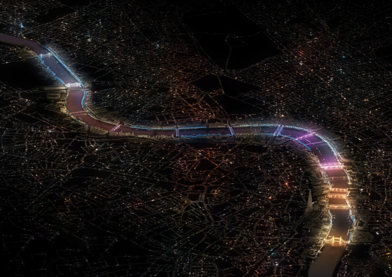План Illuminated River предусматривает оснащение 15 мостов Лондона системами динамической подсветки. Изображение: Illuminated River