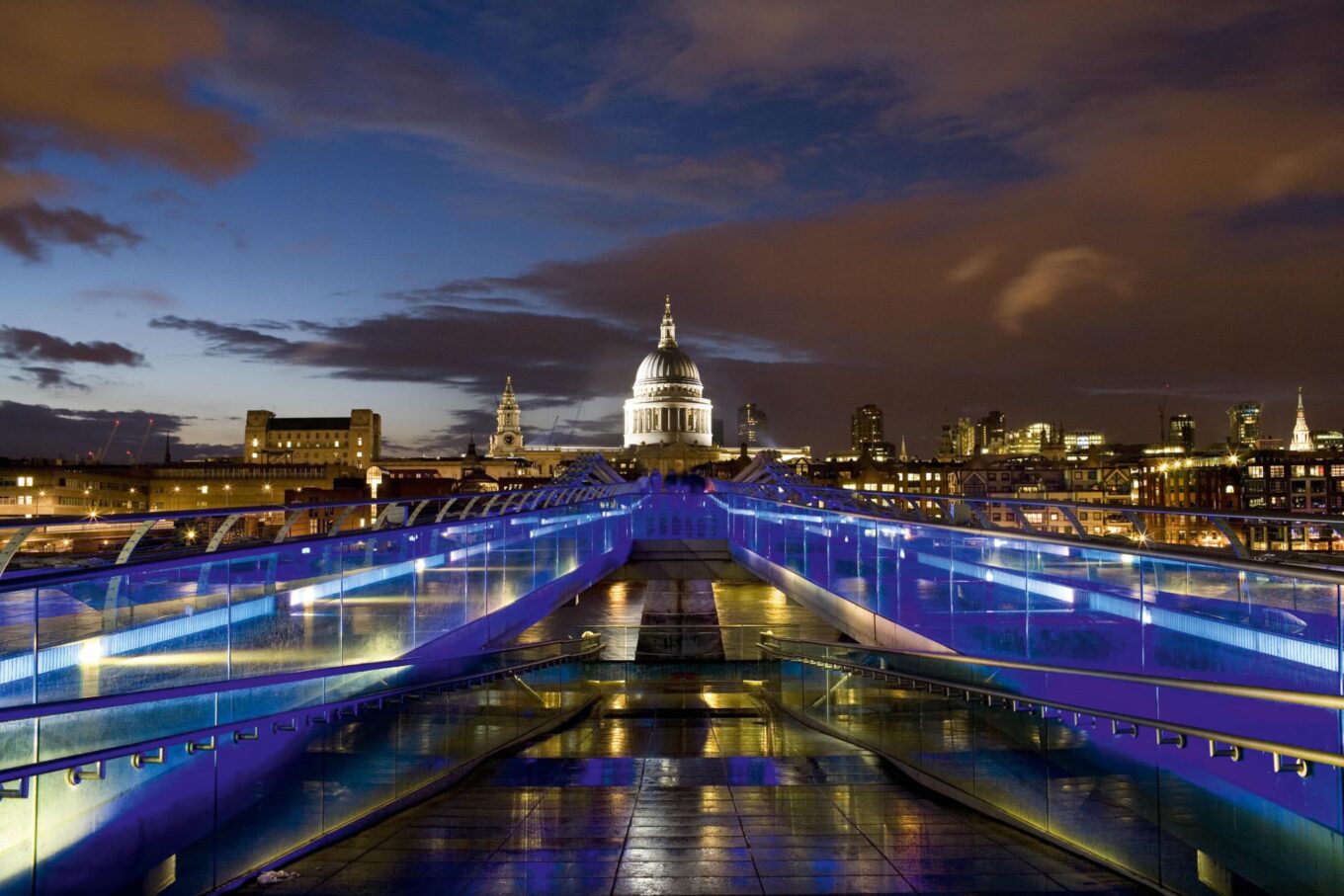Millennium Bridge — пешеходный мост через Темзу в Лондоне, построенный по проекту архитектора Нормана Фостера. Фото: Philips Lighting