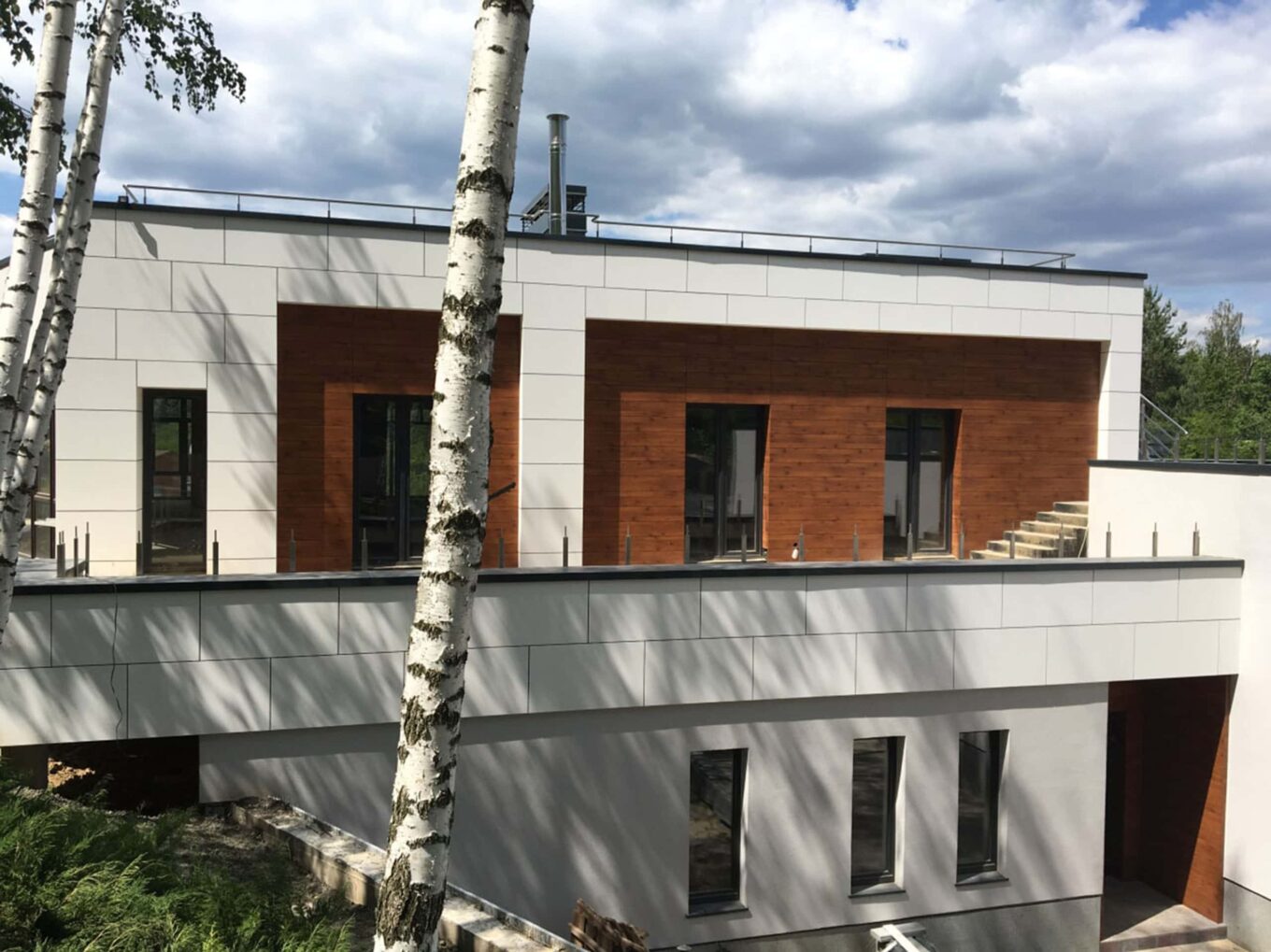 Частный дом в с. Лесники Киевской обл. Архитектор — Виктория Алехина. На фасадах — HPL панели Fundermax, реализация монтажа — компания «Фасадные системы»