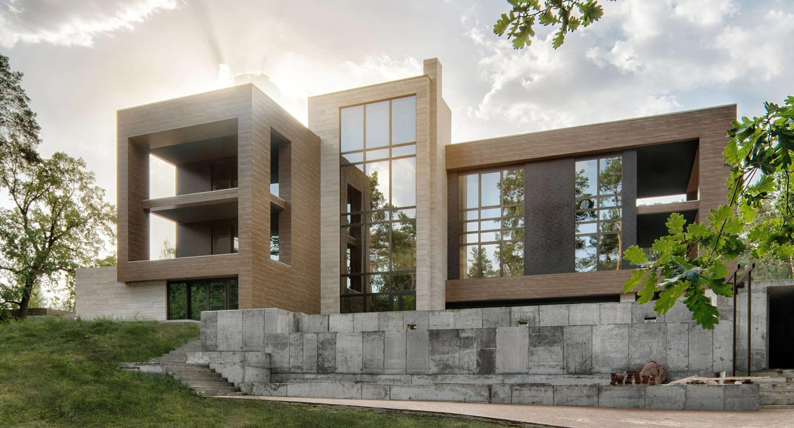 Вторым не менее важным фасадным материалом мы выбрали HPL панели, так как это единственный аналог дерева, но более практичный, долговечный и не требующий постоянного тщательного ухода. HPL панели от Fundermax не только практичны, а и эстетичны. При этом цветовая гамма материала позволяет создавать гармоничные и функциональные объекты, которые останутся в тренде на многие годы.