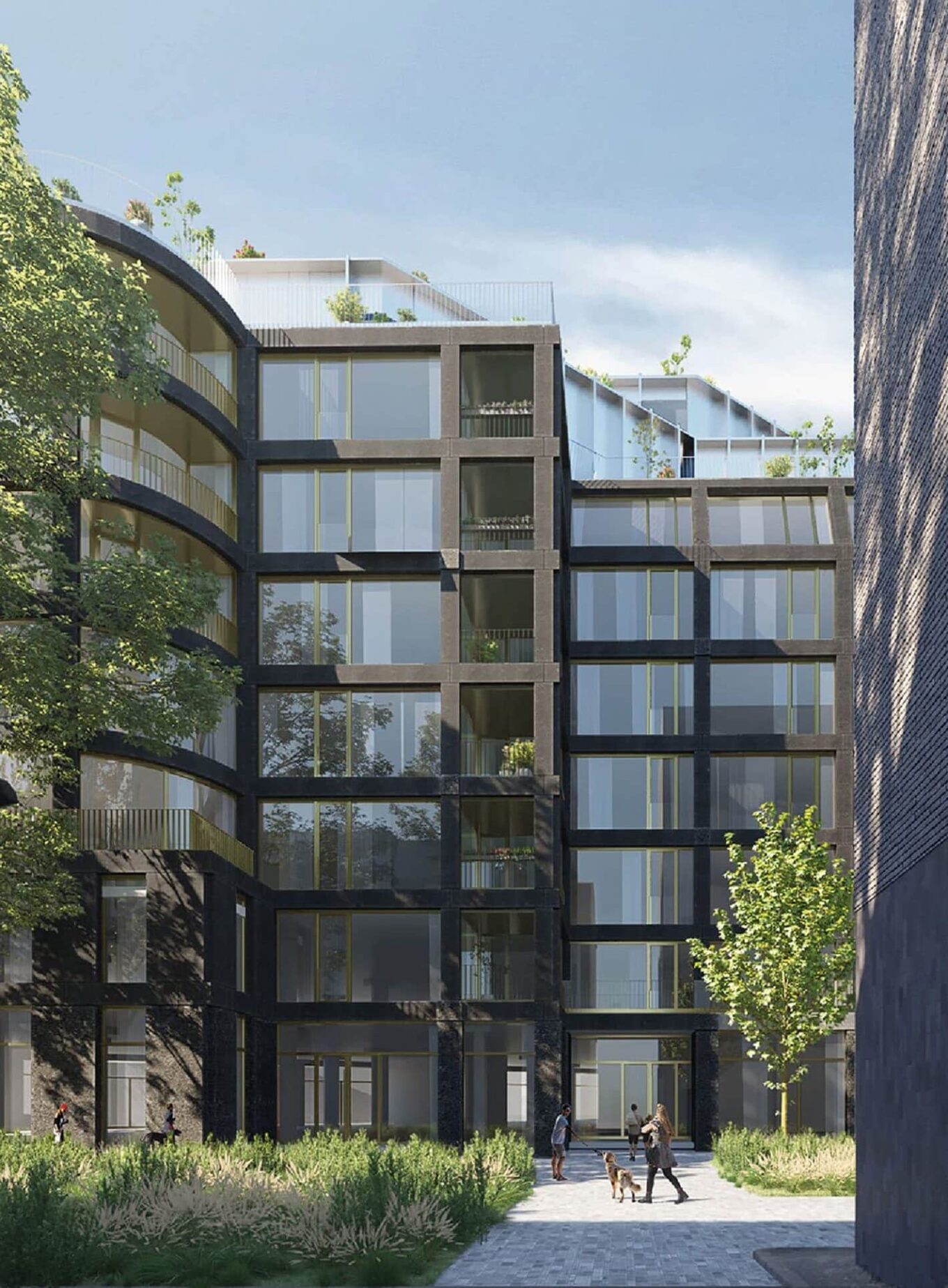 Для майбутніх резидентів передбачений окремий вхід до апартаментів із тихого двору з садом. Джерело зображення: BURØ architects