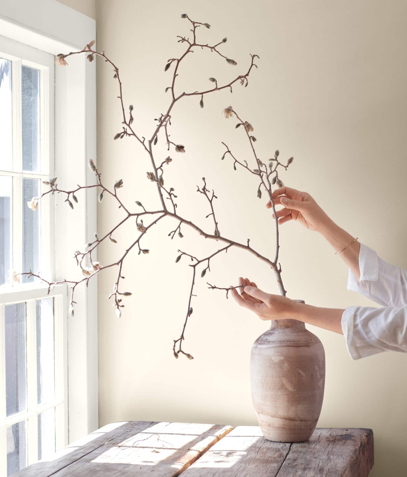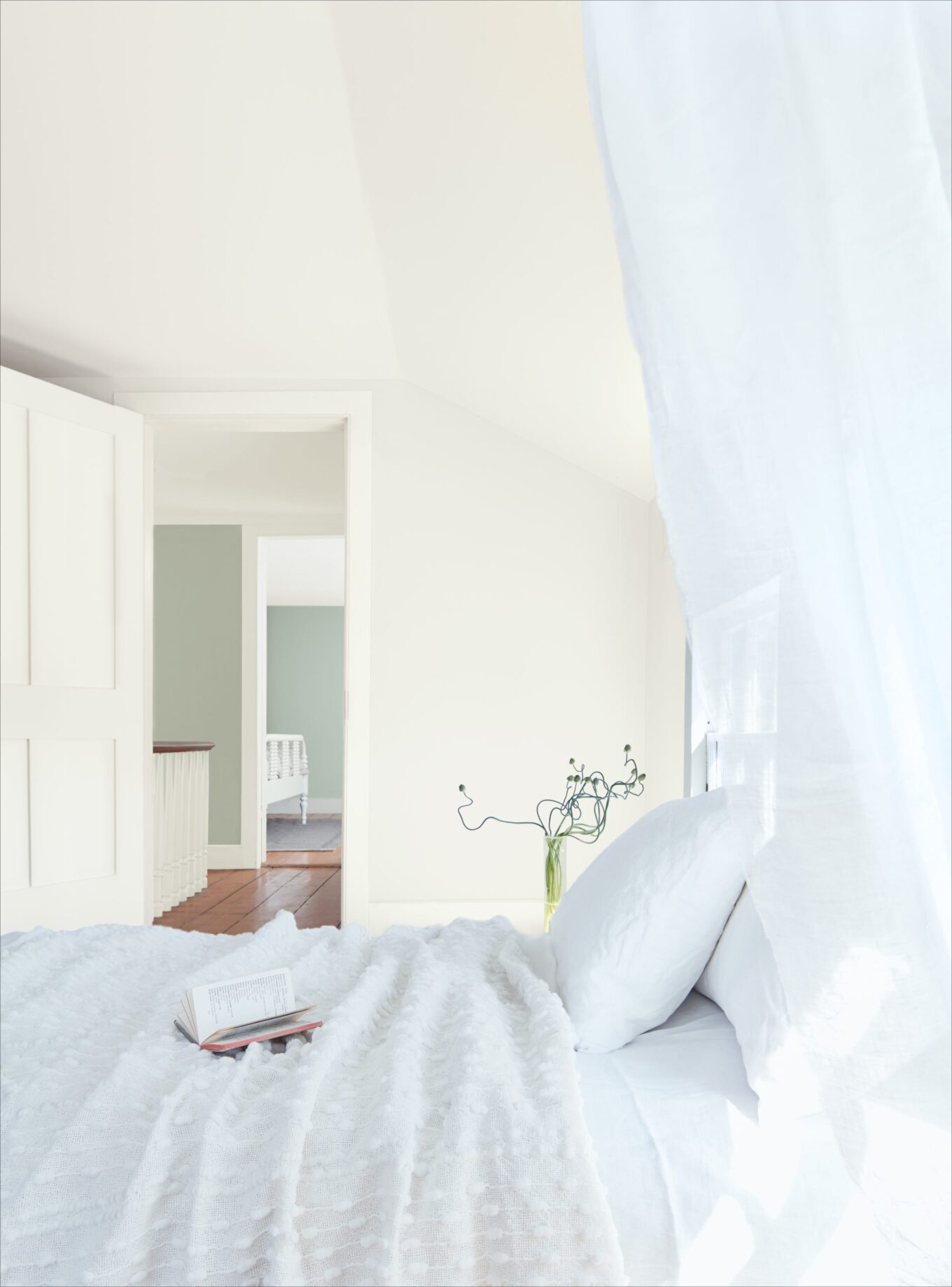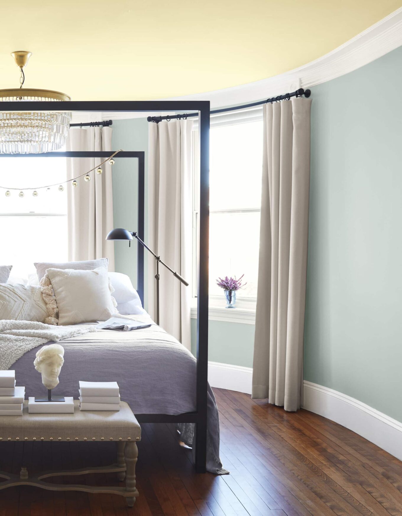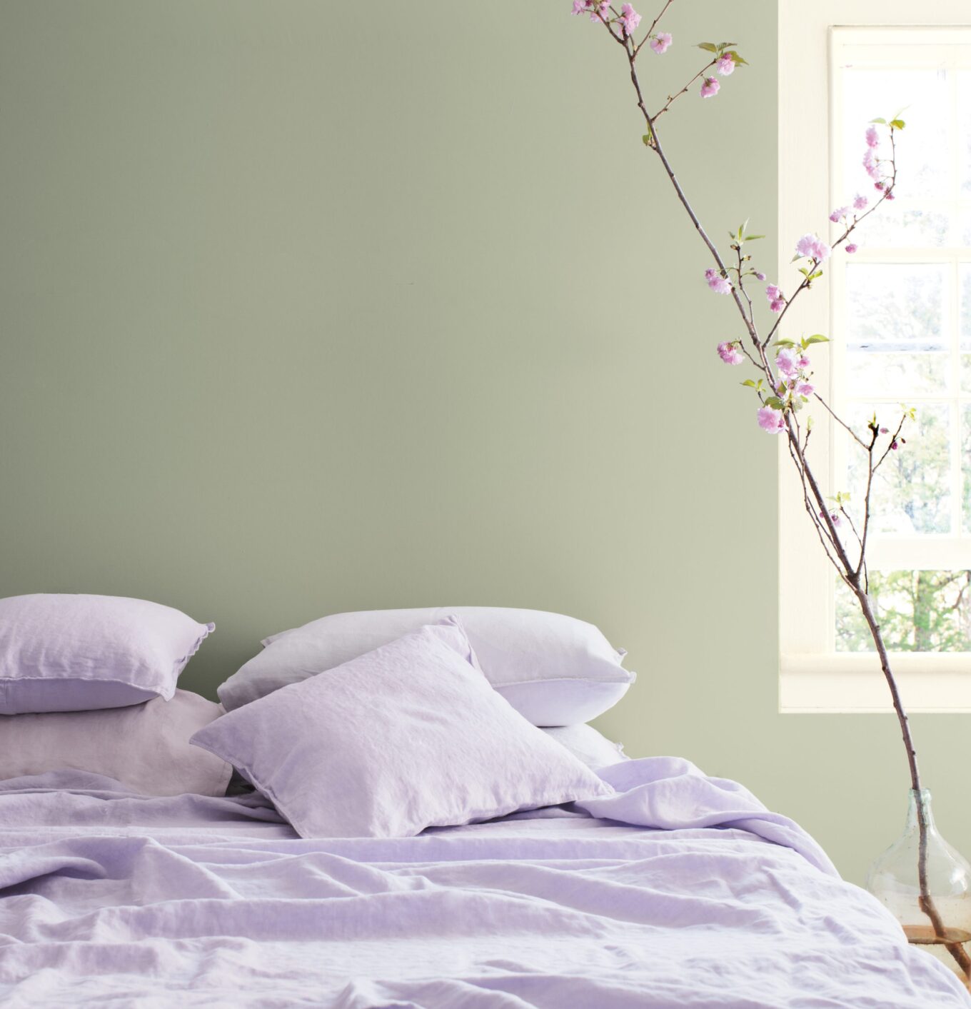 Приглушенный оттенок October Mist 1495 создает в интерьере атмосферу легкости и никак не конфликтует с индивидуально подобранным декором