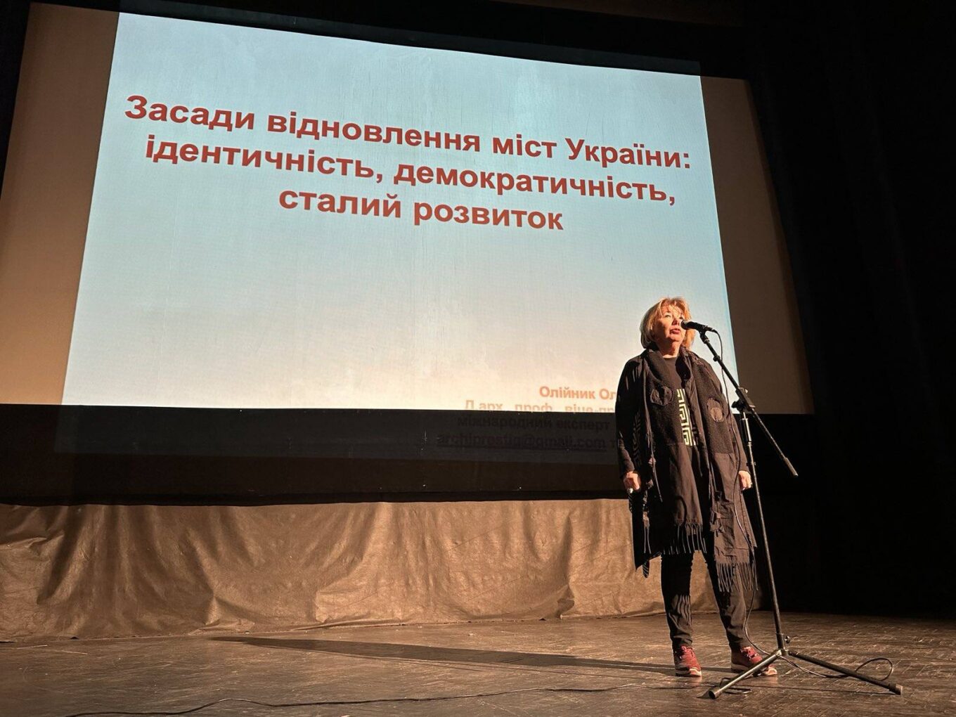 Архітекторка Ганна Бондар під час виступу на Lviv Urban Forum у 2024 році. Ганна Бондар очолила розроблення Містобудівного кодексу України. Джерело фото: Lviv Urban Forum