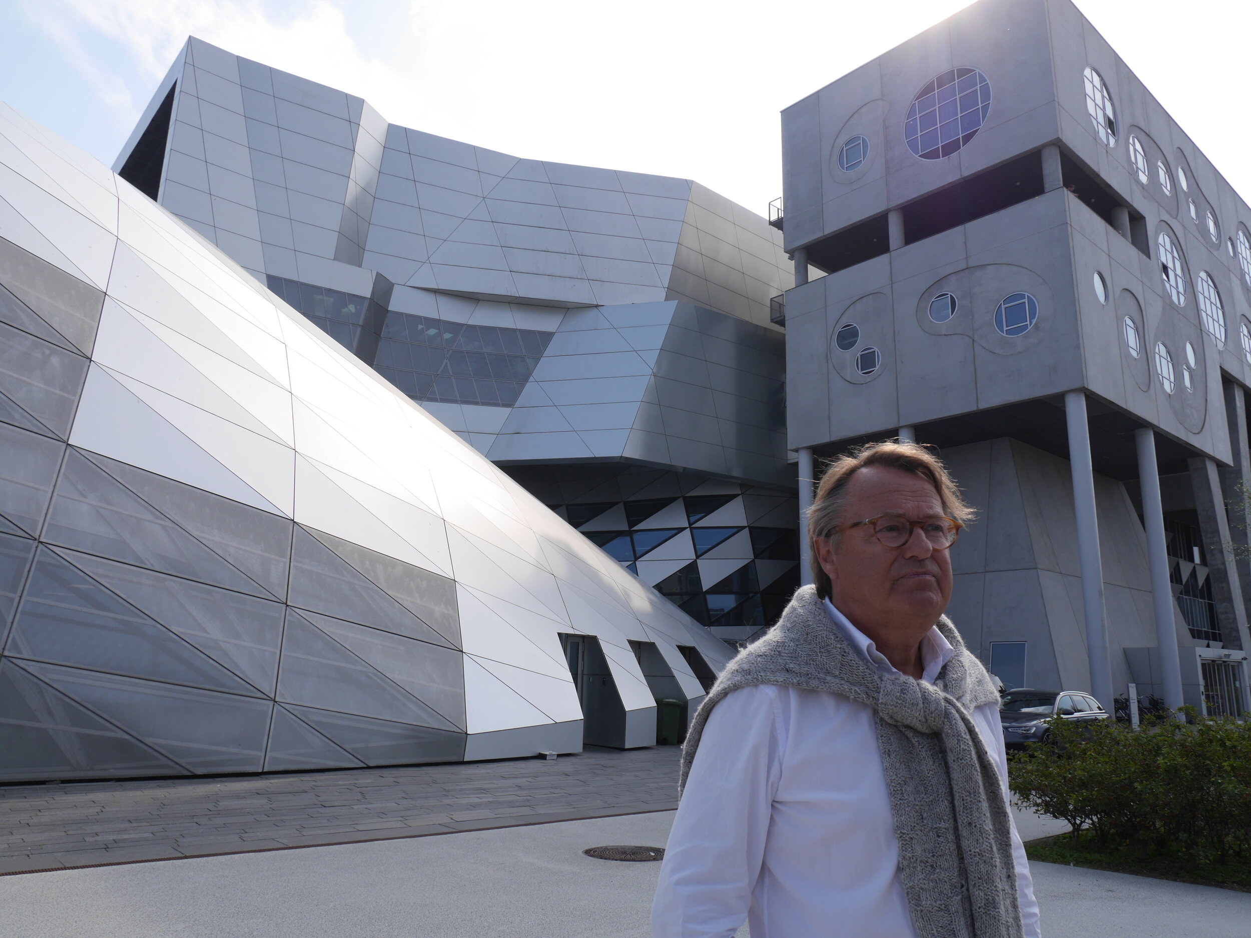 Данський архітектор Педер Бальцер Нільсен на тлі нового житлового проєкту на набережній у місті Ольборзі. Будинки спроєктовані Henning Larsen Architects. Фото: Niels Bjørn