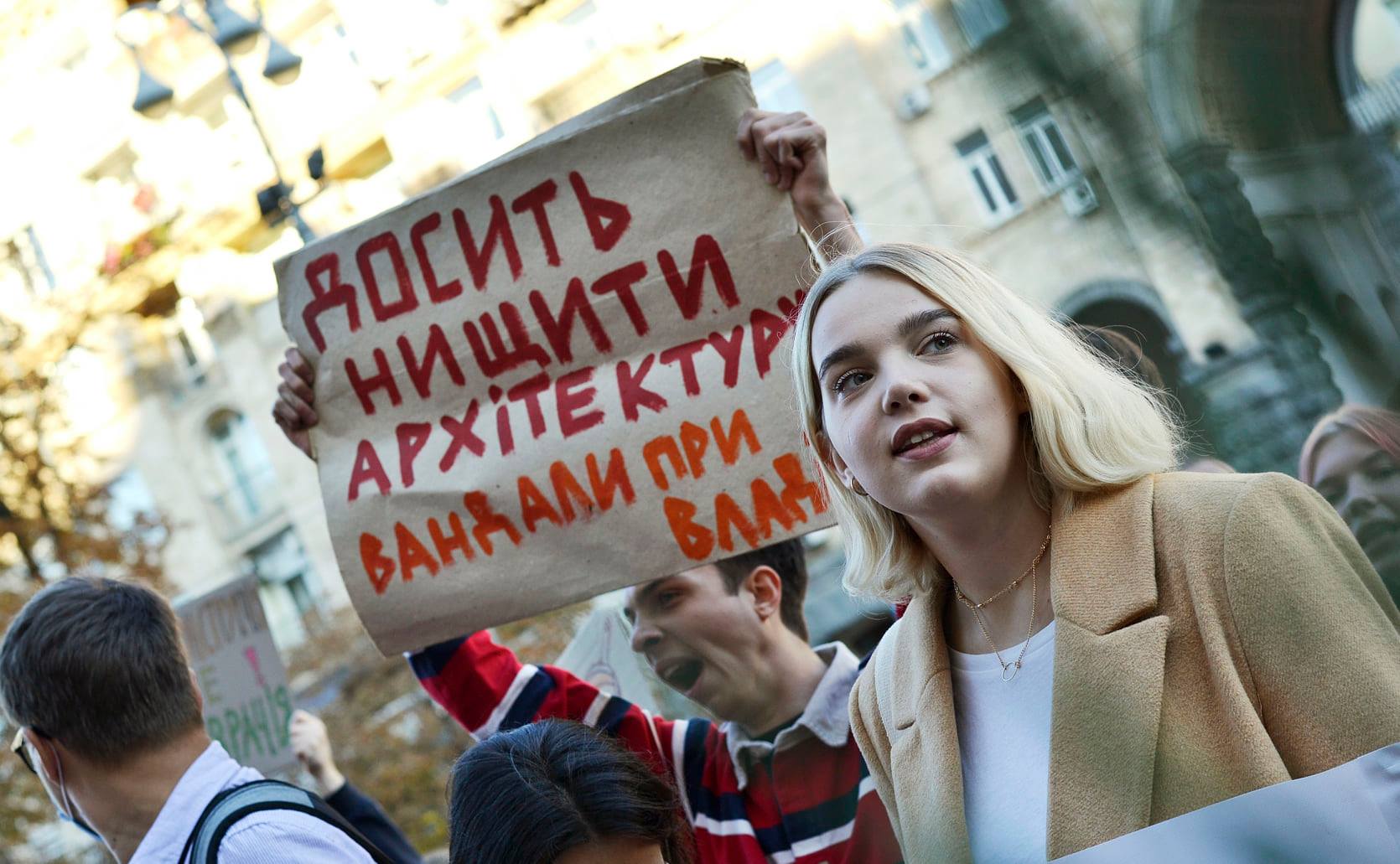 Учасниця «Маршу за Київ» — масового антизабудовного мітингу, який відбувся в столиці у жовтні 2021 року. Фото: Anna Pelykh